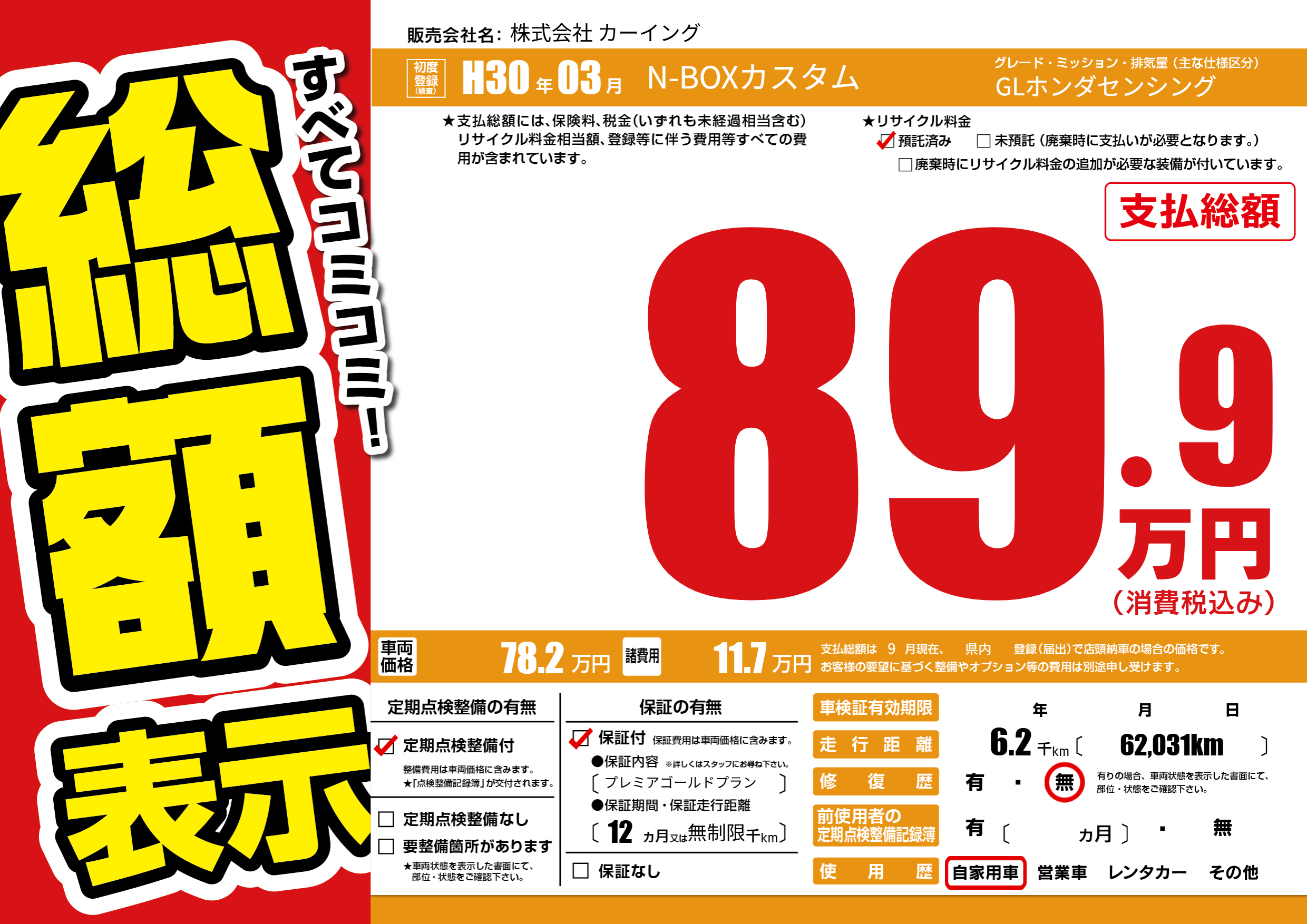 | 車名 | N-BOXカスタム | グレード ミッション 排気量 |