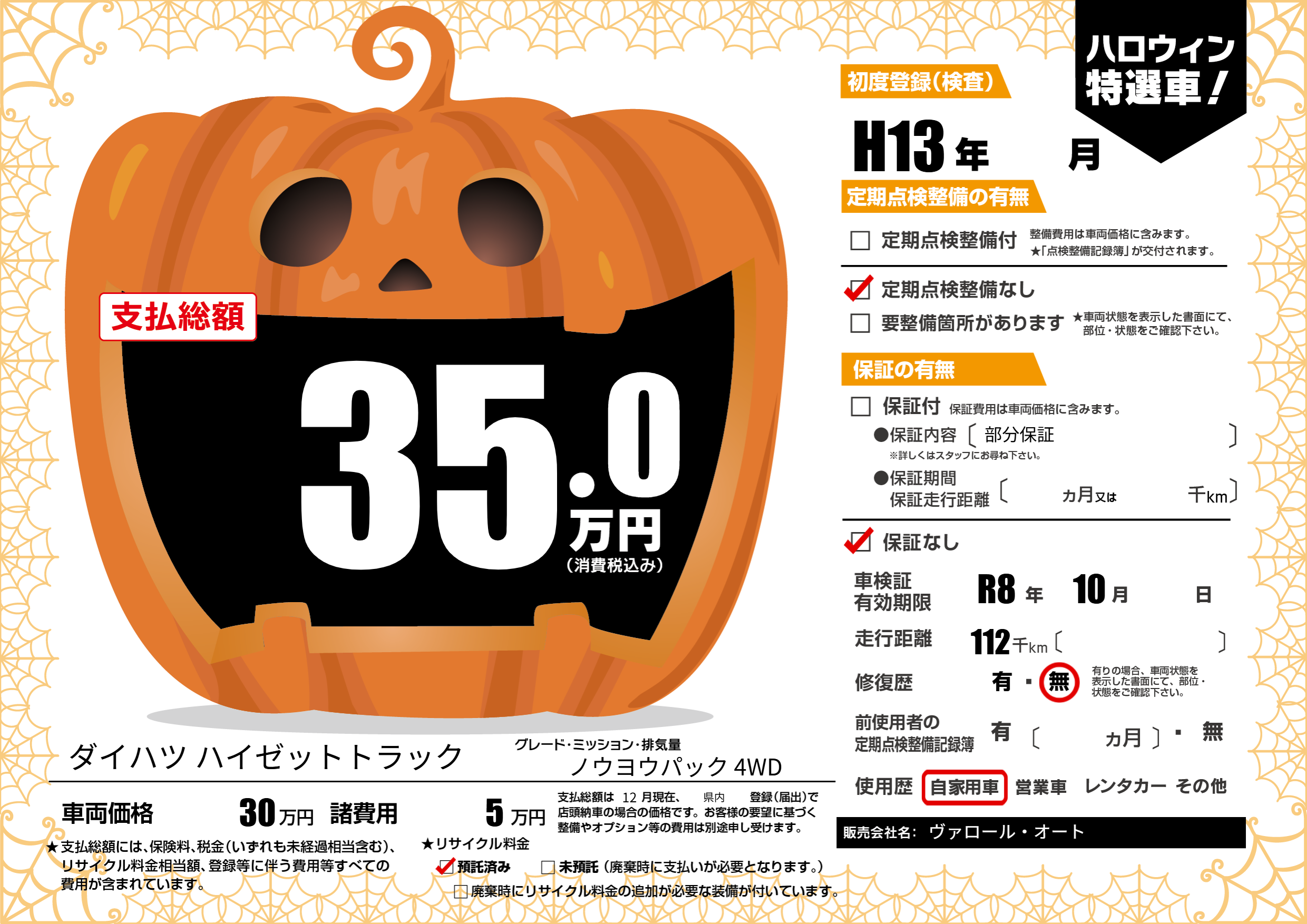 保証なし 保証内容(部分保証) ---ヶ月または()千kmまで |