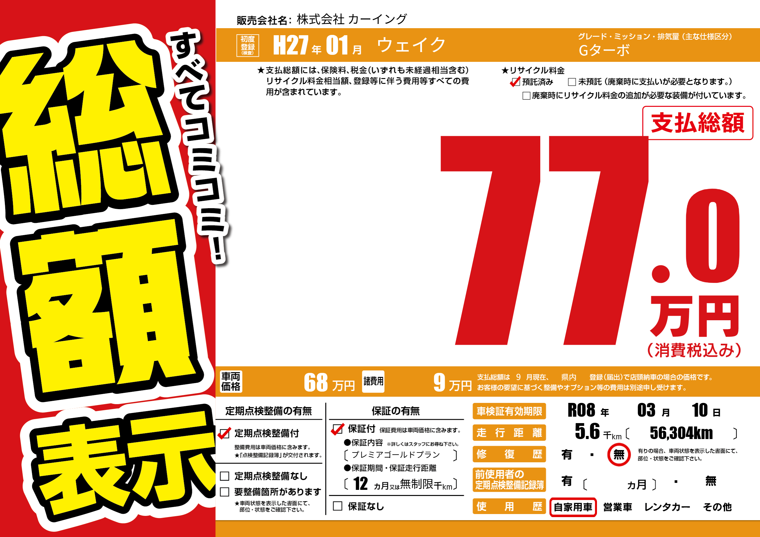 | 車名 | ウェイク | グレード ミッション 排気量 |