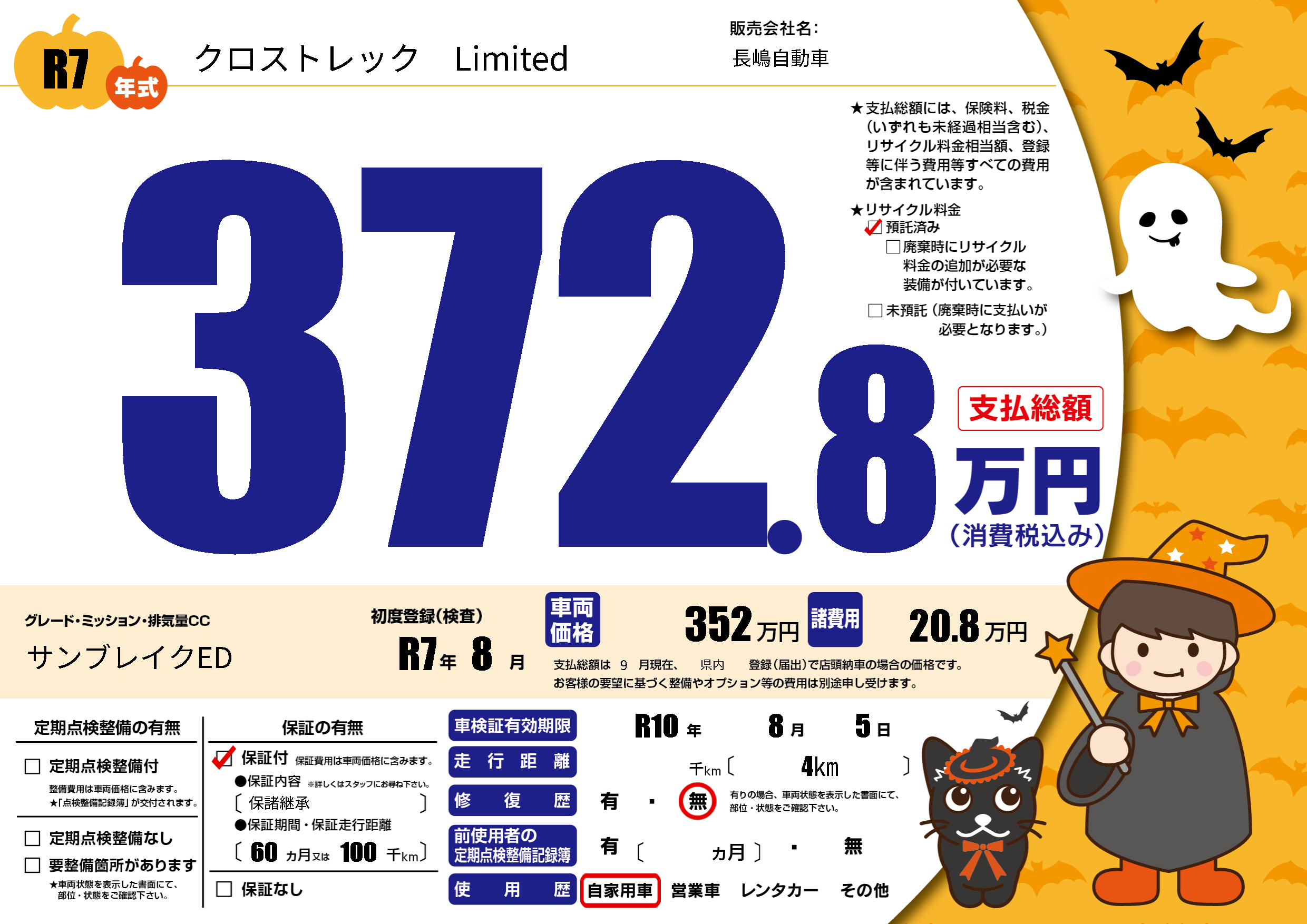 | 走行キロ | - | 初年度登録 | R7年8月 |