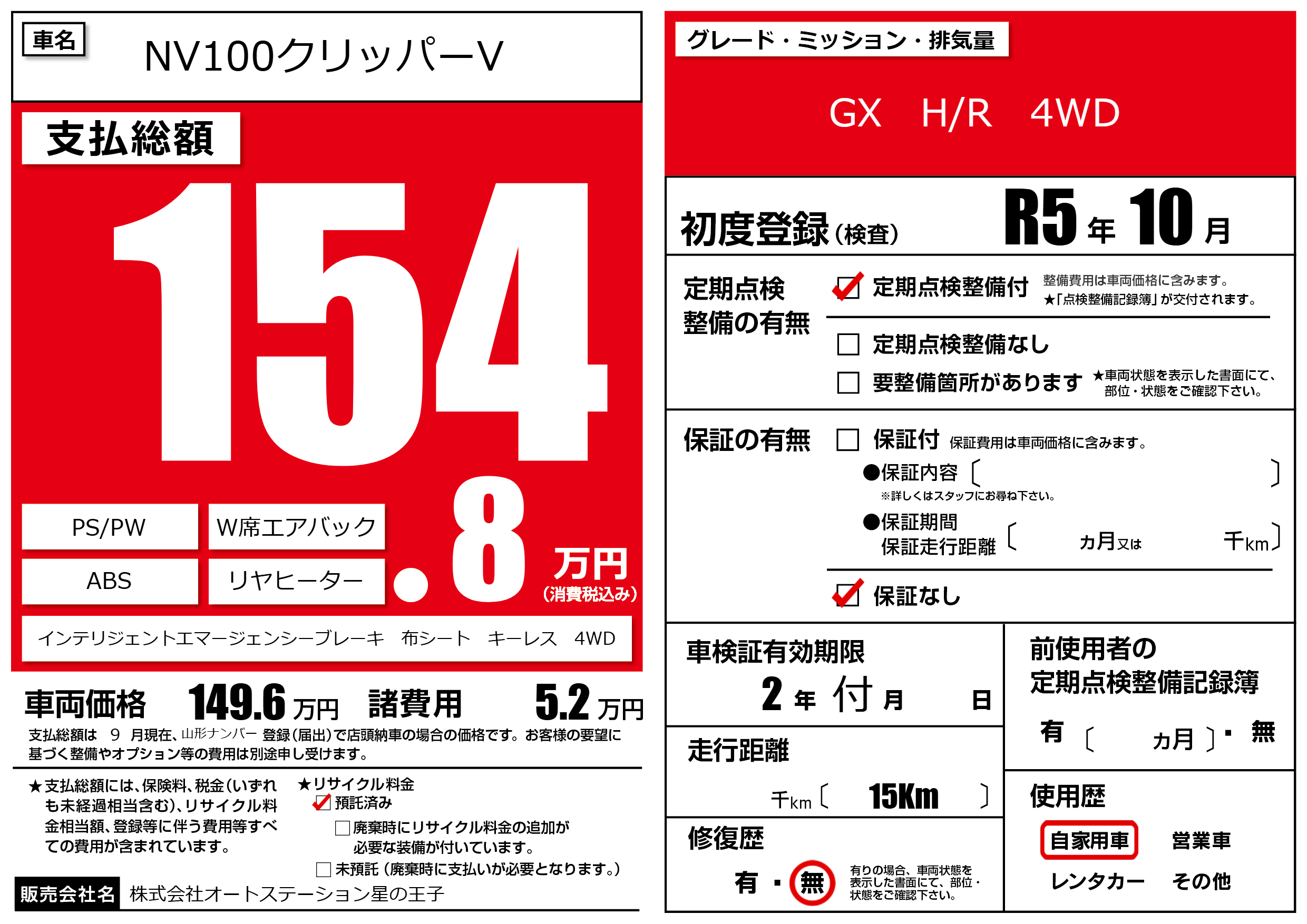 | 定期点検整備 | 定期点検整備あり | ||