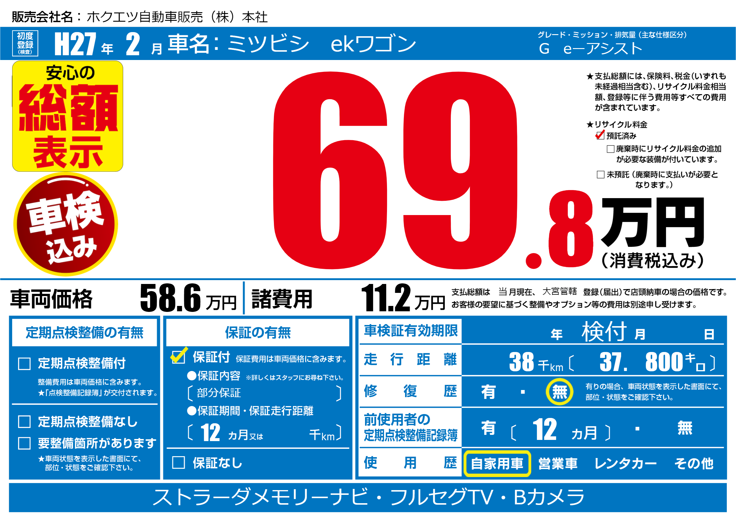 | 走行キロ | 3.8万km | ||