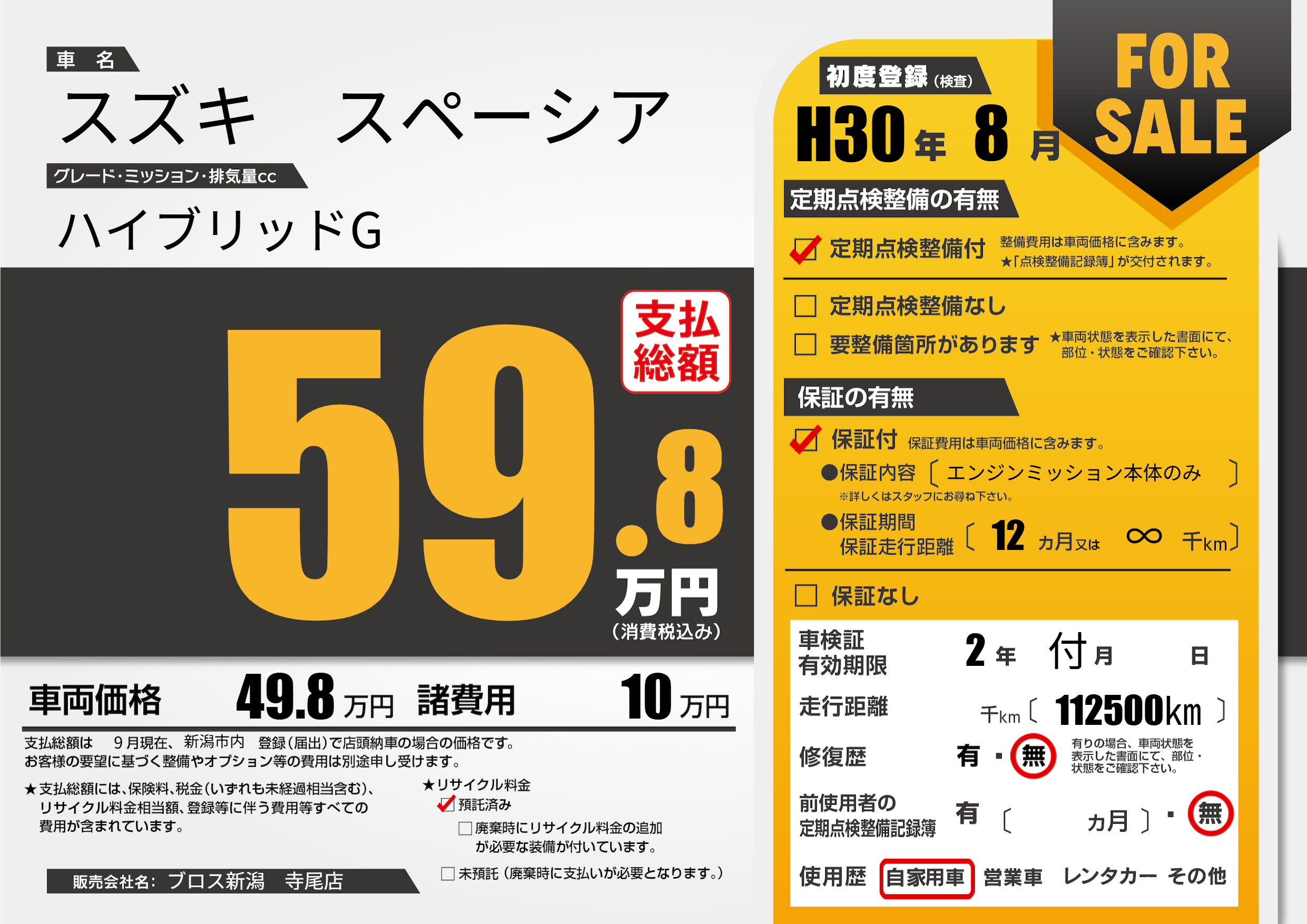 | 走行キロ | - | 初年度登録 | H30年8月 |