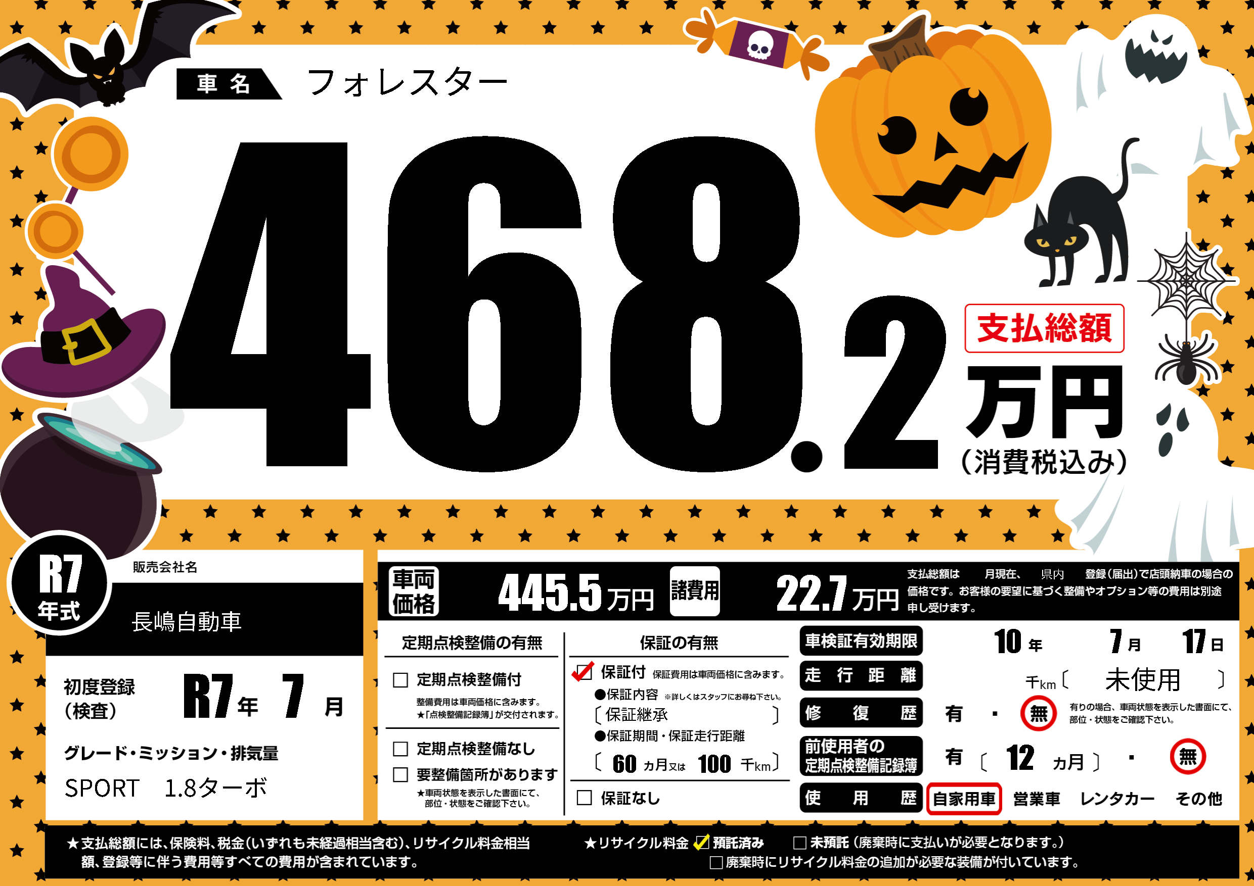 | 走行キロ | - | 初年度登録 | R7年7月 |