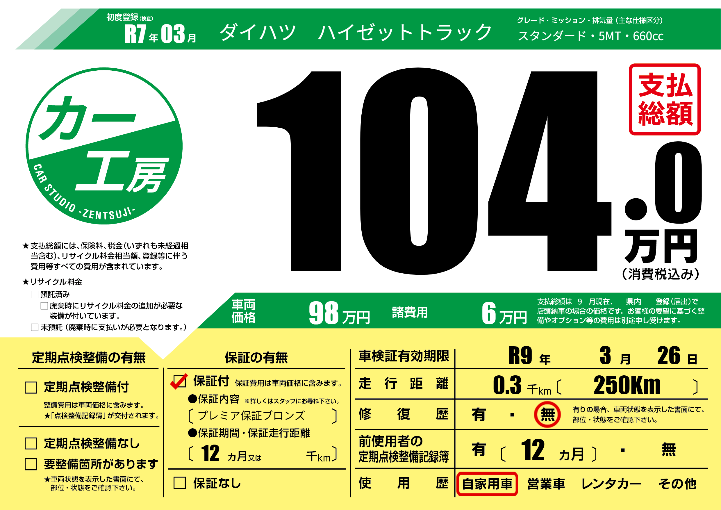 | 走行キロ | - | 初年度登録 | R7年03月 |