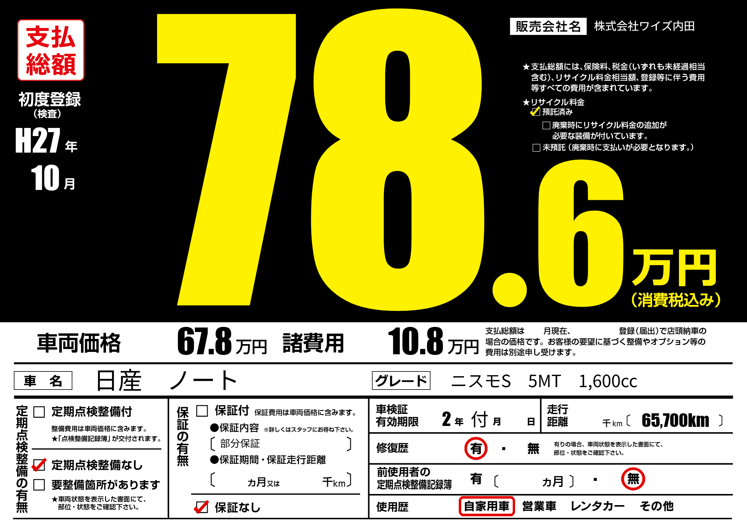 なし | 車検制限 | 2年付月---月 |