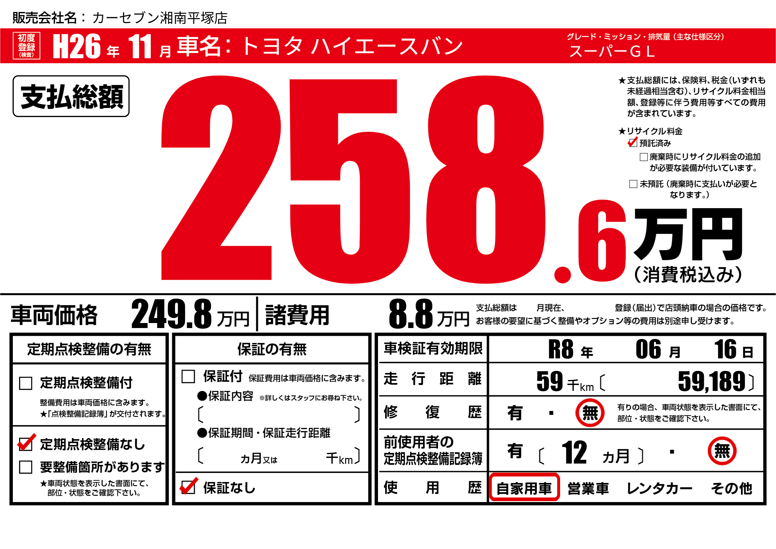 なし | 車検制限 | R8年06月16月 |