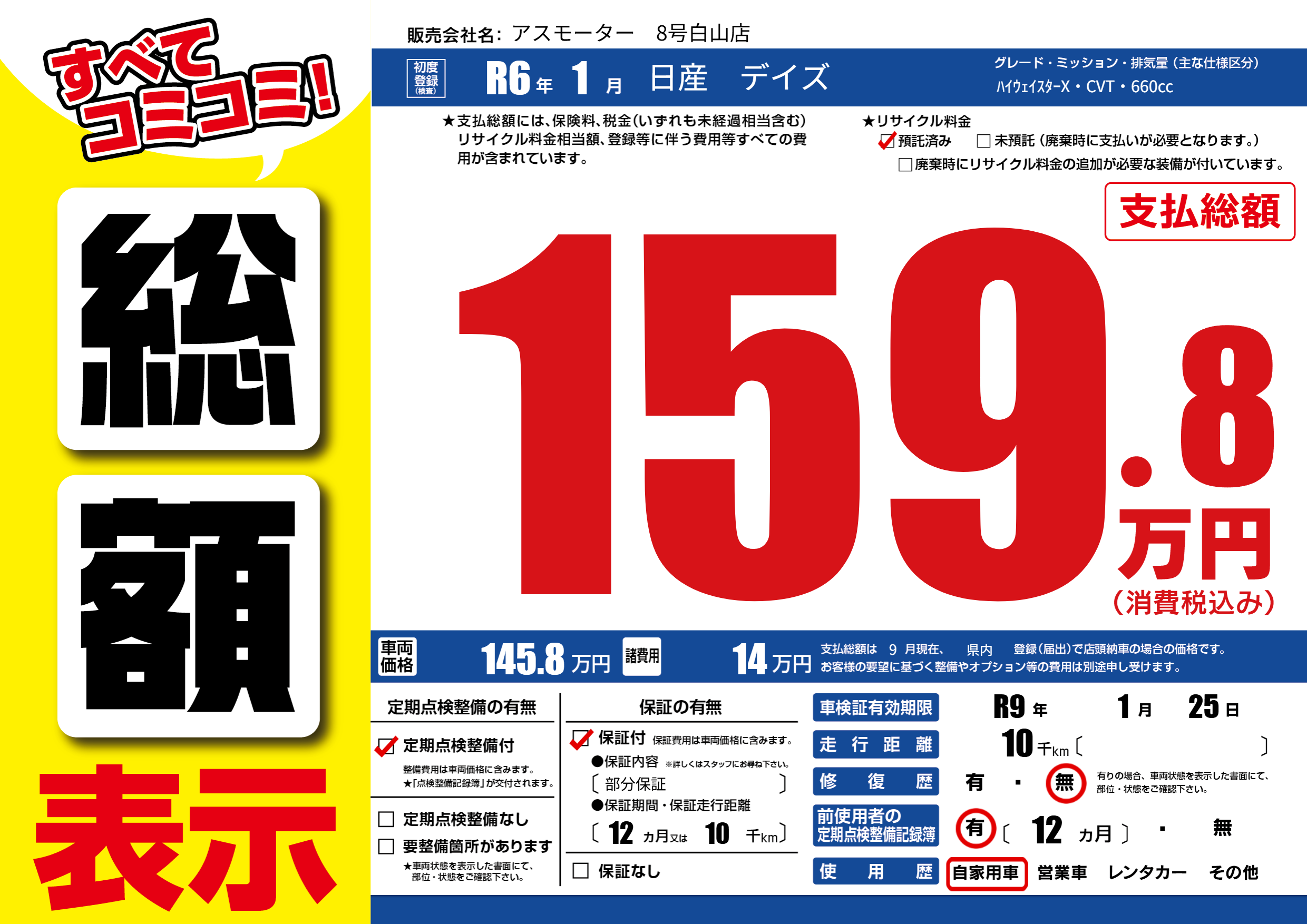 なし | 車検制限 | R9年1月25月 |