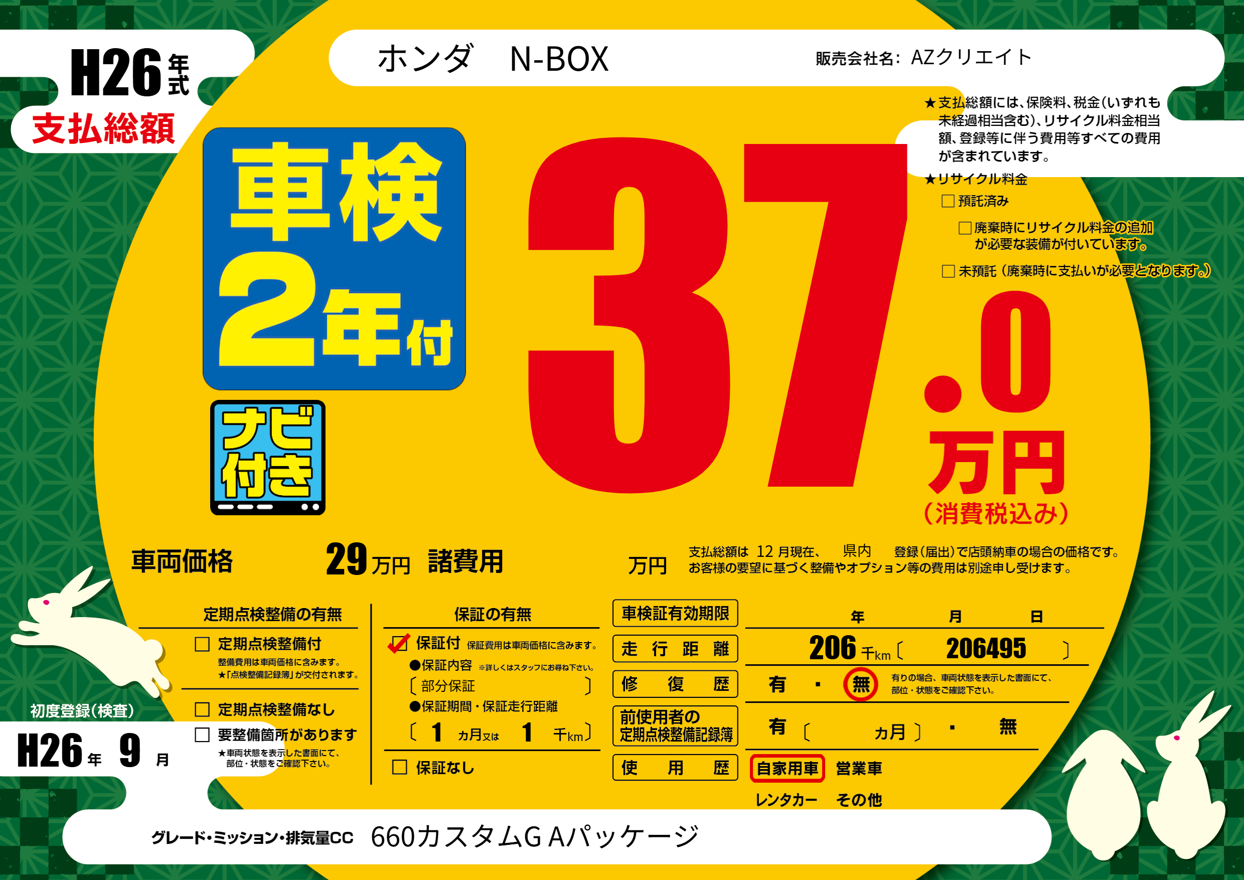 | 初年度登録 | H26年9月 | ||