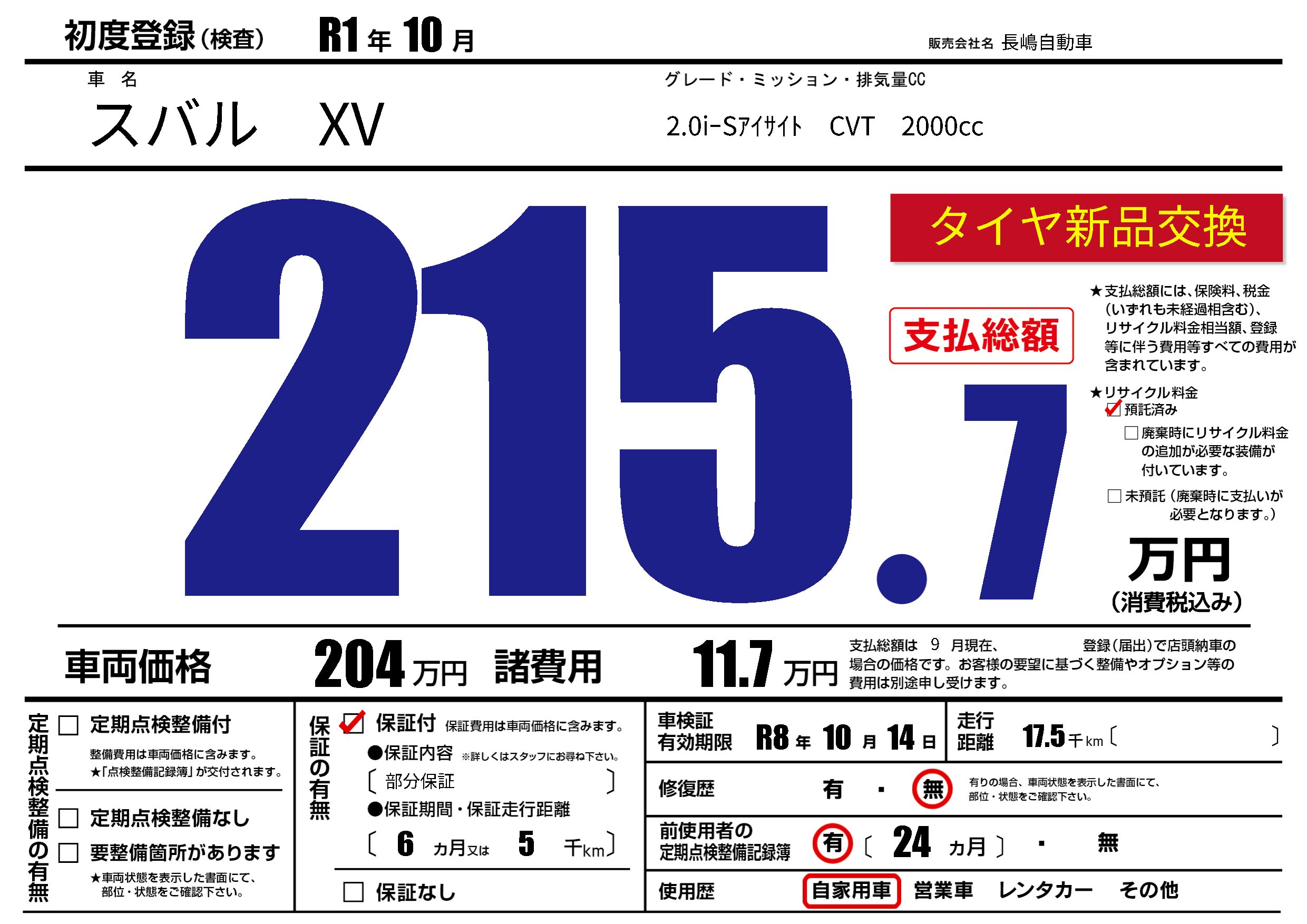 保証付き 保証内容(部分保証) 6ヶ月または(5)千kmまで |