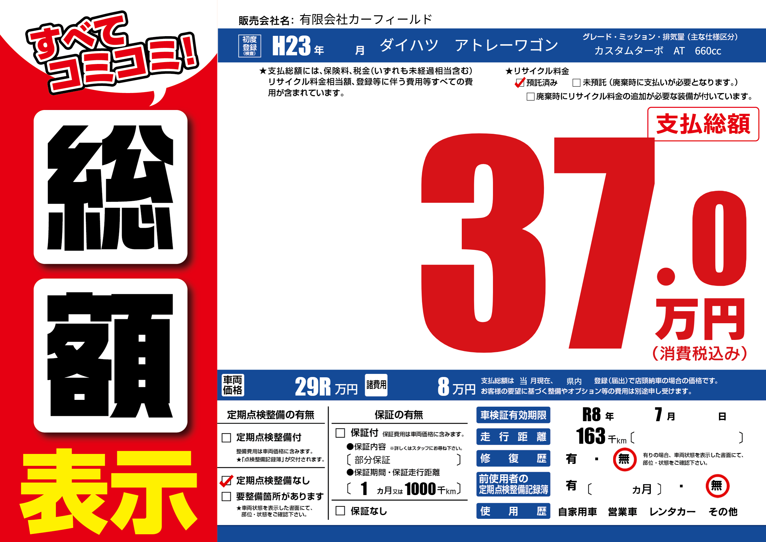 なし | 車検制限 | R8年7月---月 |