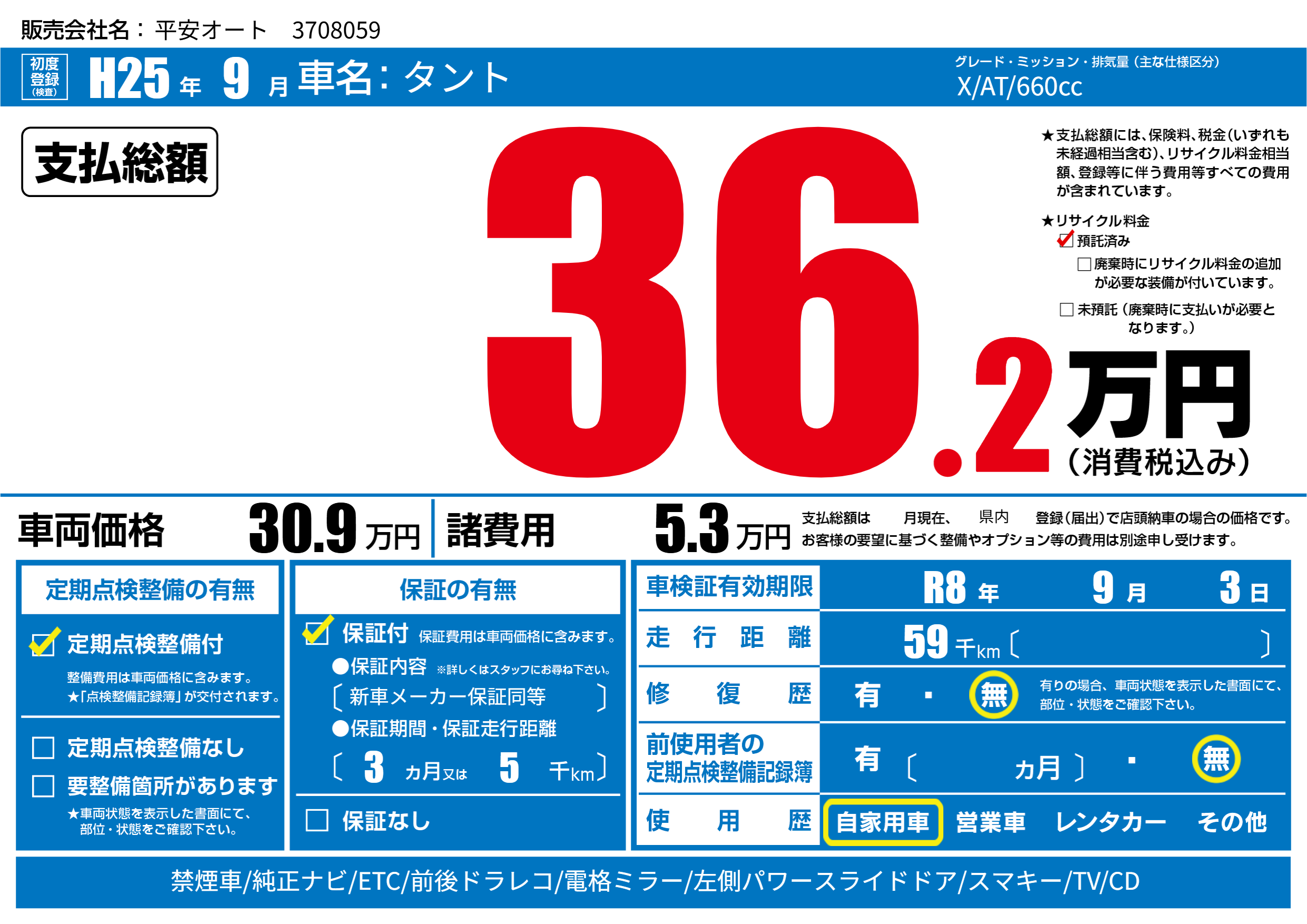 車検制限 R8年 9月 3日