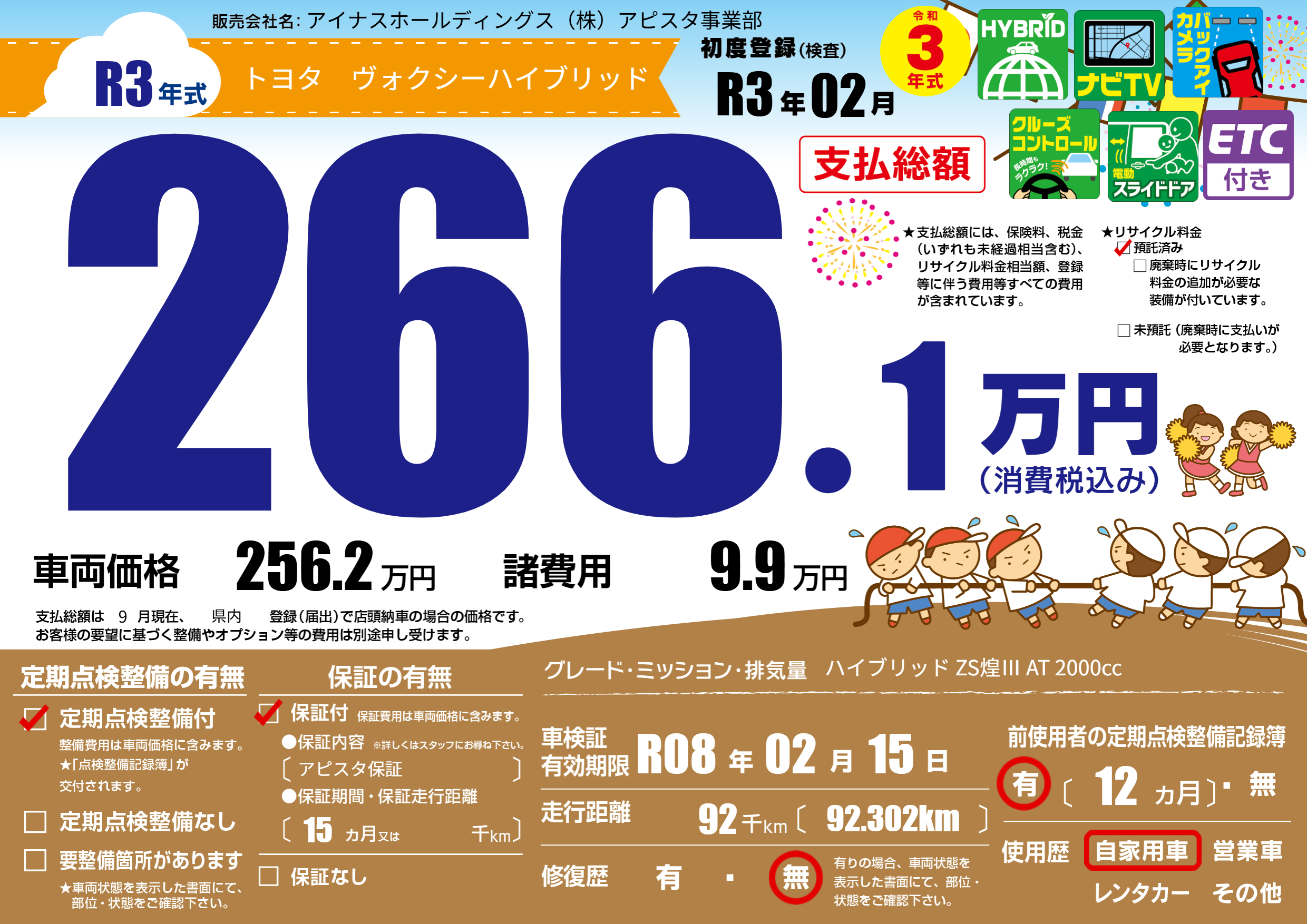 | 走行キロ | 9.2万km | 初年度登録 | R3年02月 |