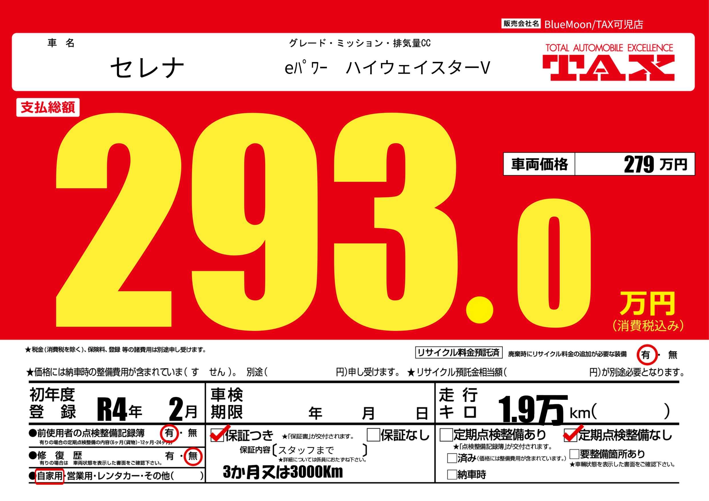 保証付き 保証内容(スタッフまで) ---ヶ月または()千kmまで |
