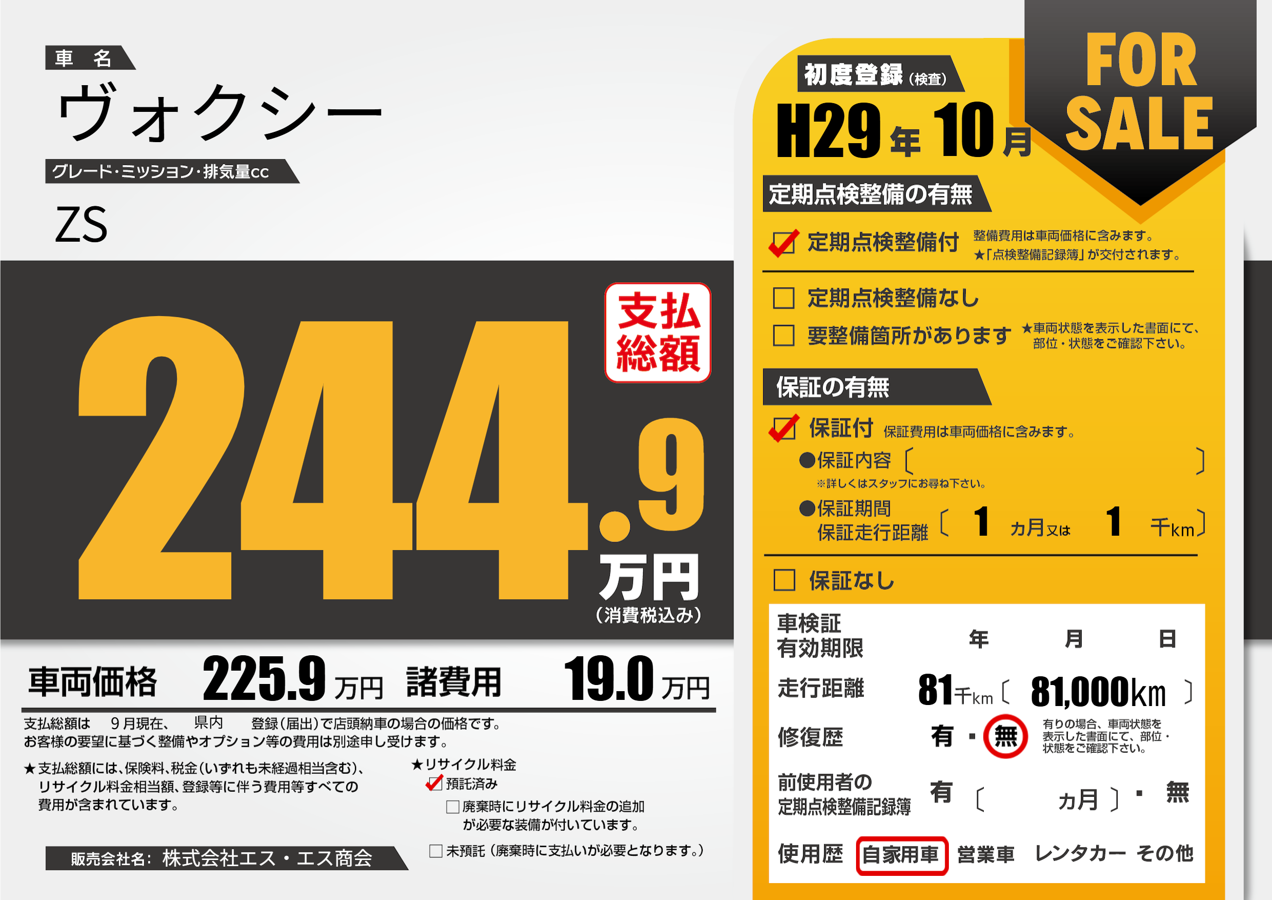 | 走行キロ | 8.1万km | 初年度登録 | H29年10月 |