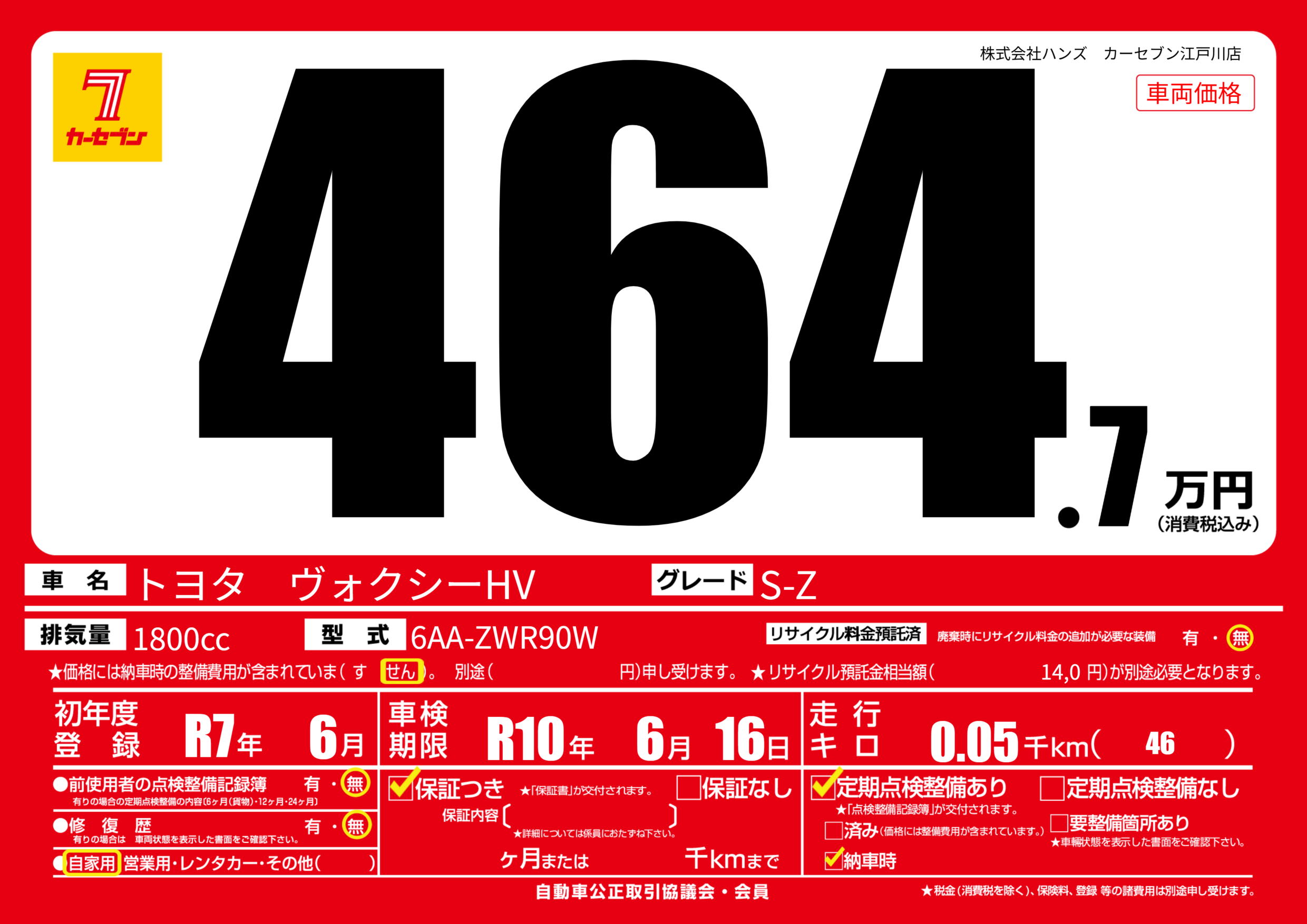 | 初年度登録 | R7年6月 | ||