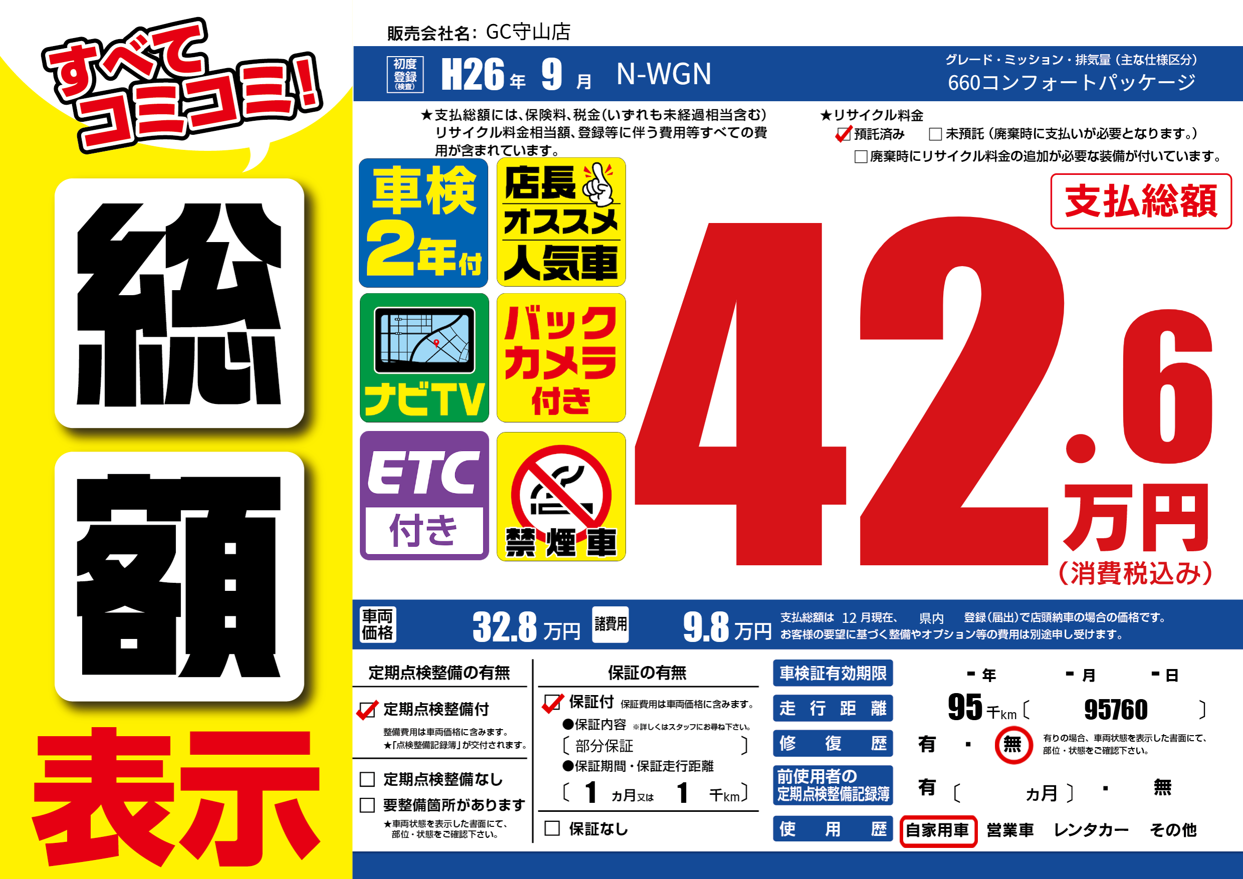 | 車名 | N-WGN | グレード ミッション 排気量 |