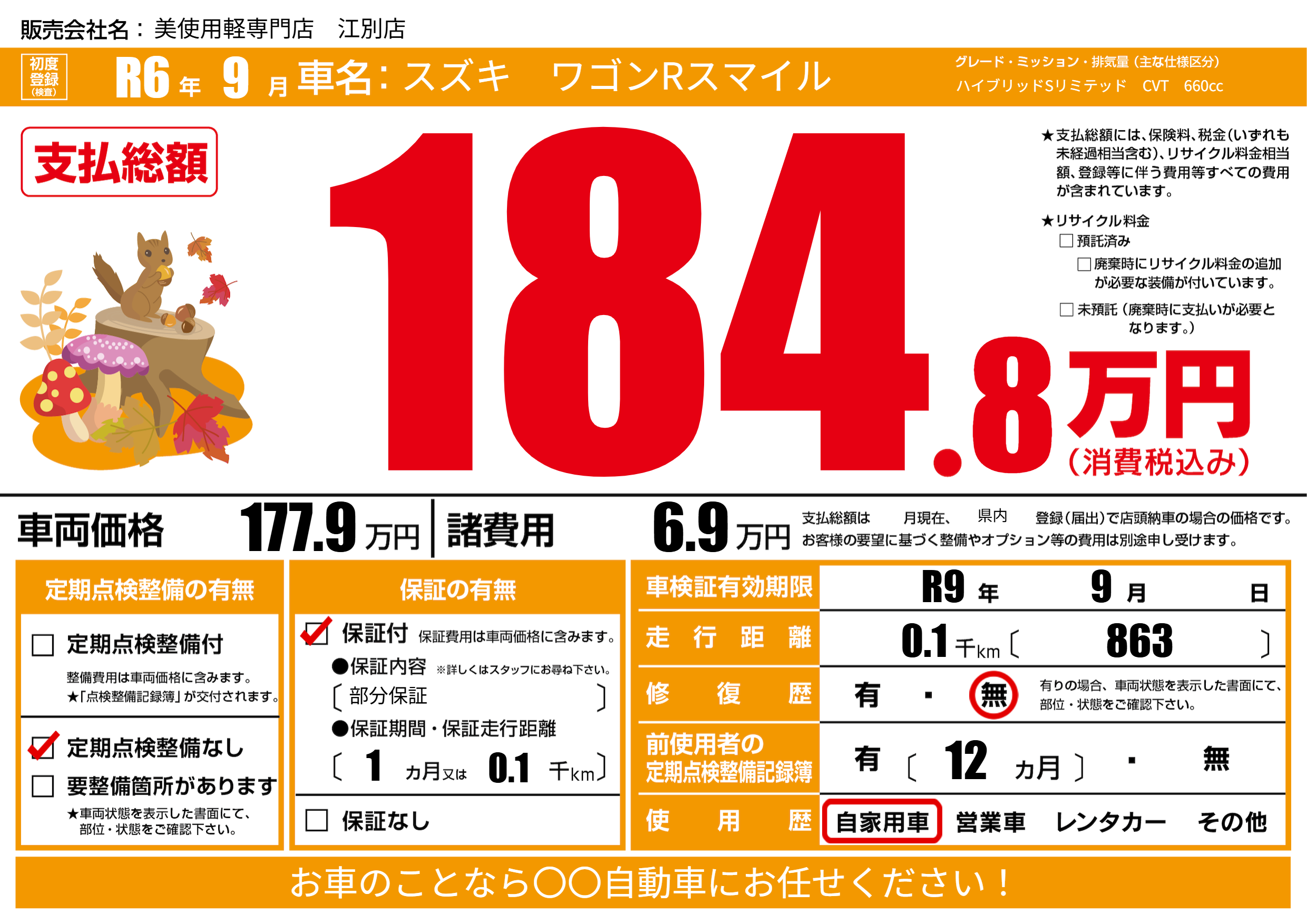 | 走行キロ | - | 初年度登録 | R6年9月 |