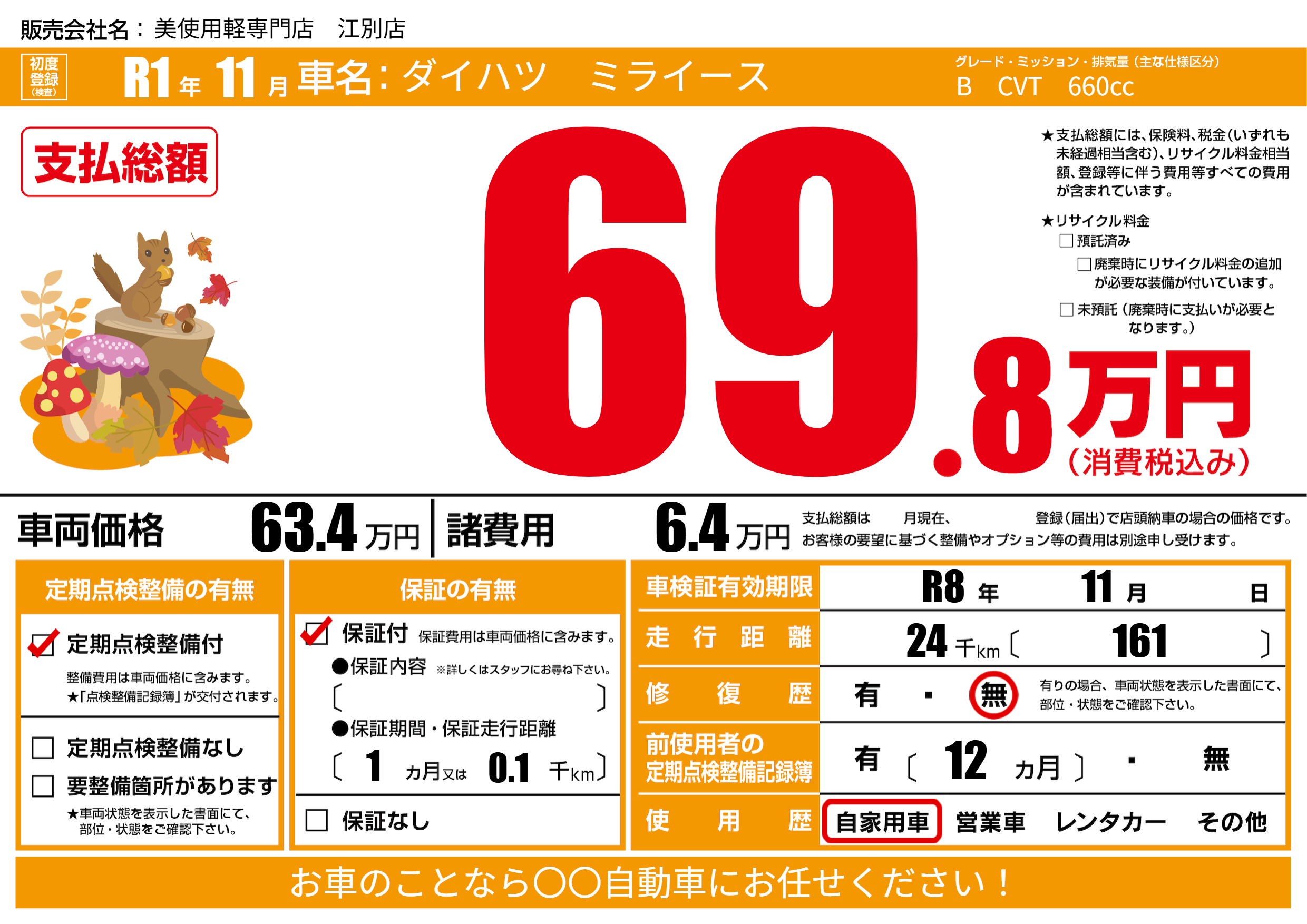 保証付き 保証内容(---) 1ヶ月または(0.1)千kmまで |