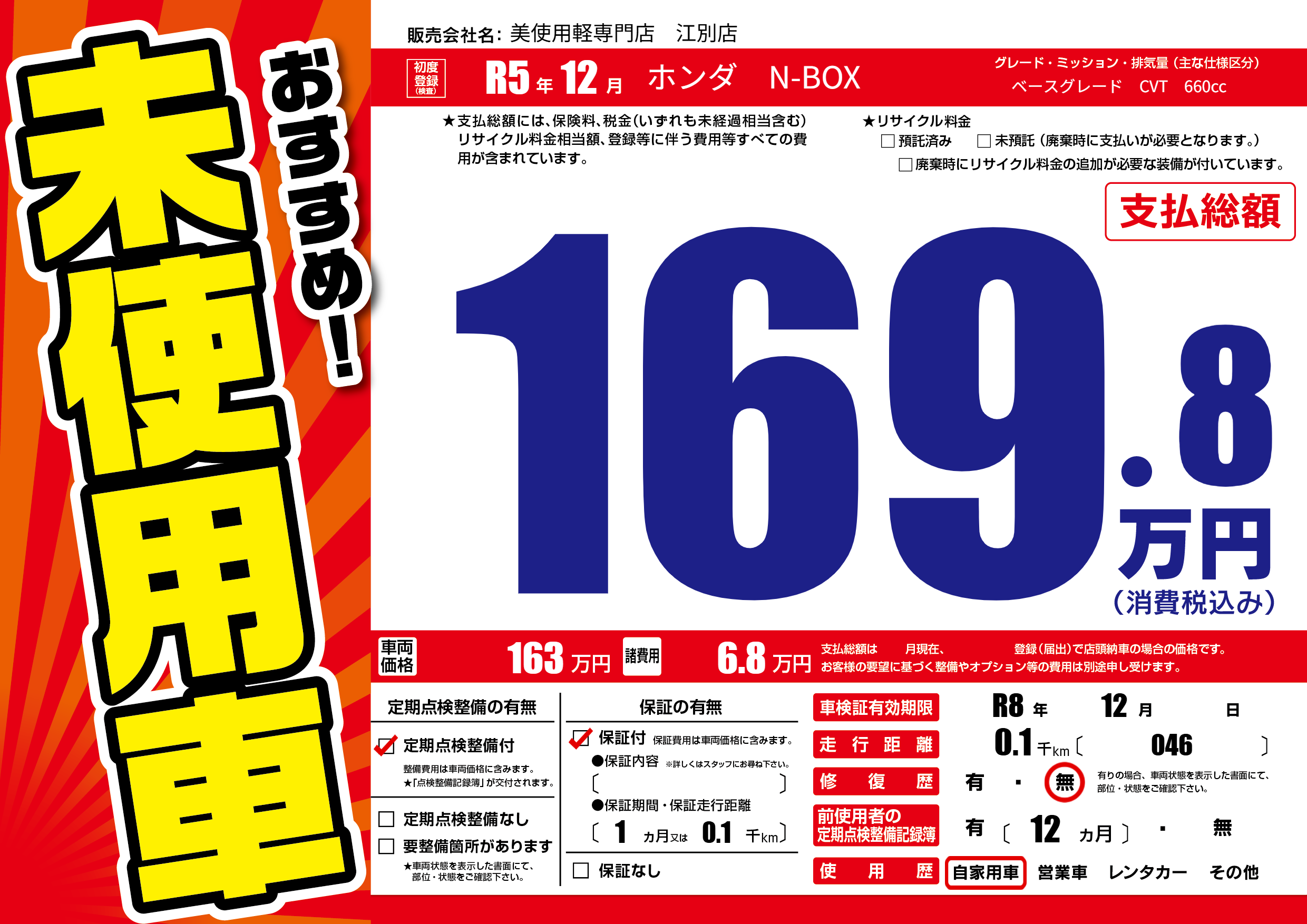| 走行キロ | - | 初年度登録 | R5年12月 |