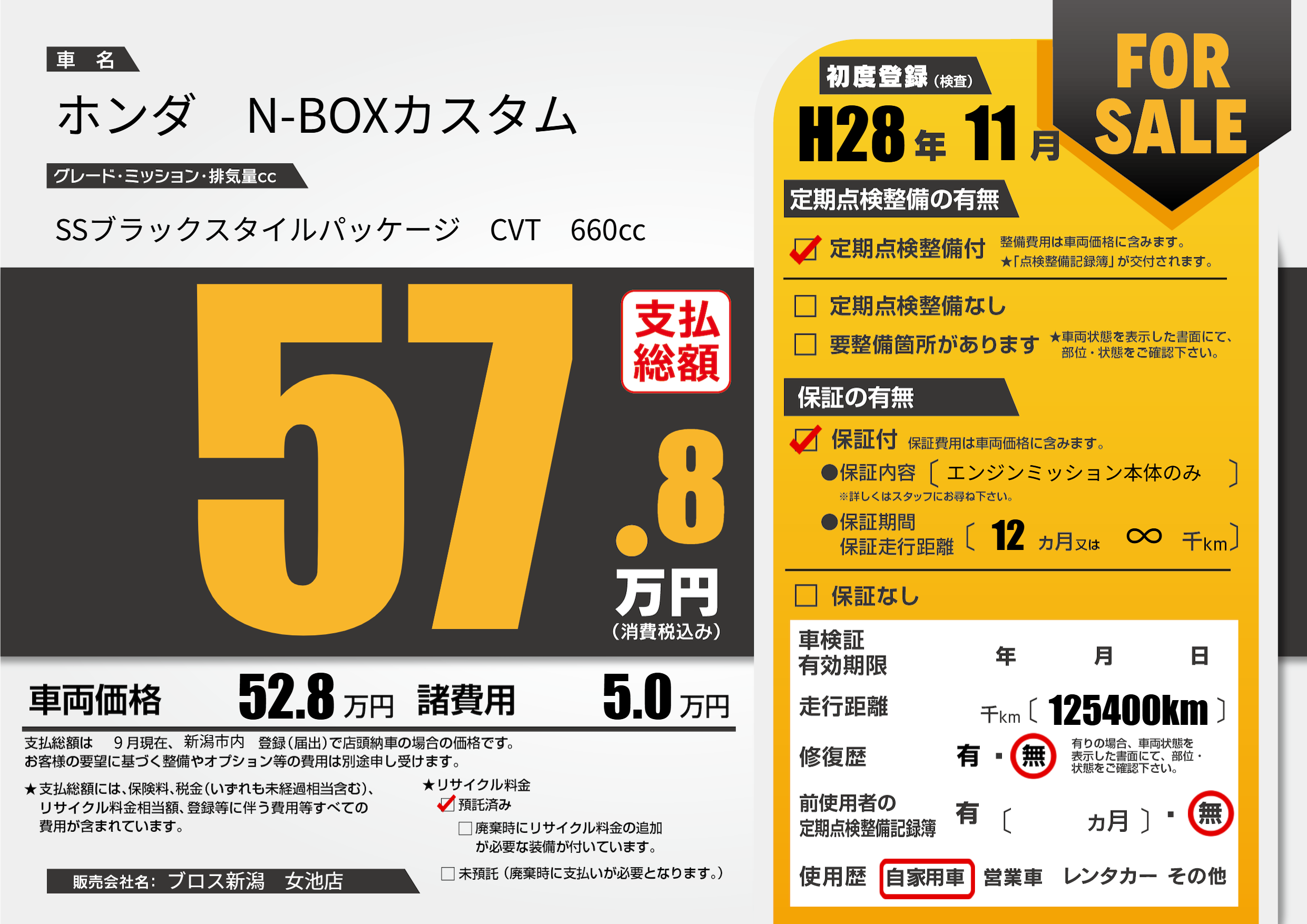 | 走行キロ | - | 初年度登録 | H28年11月 |