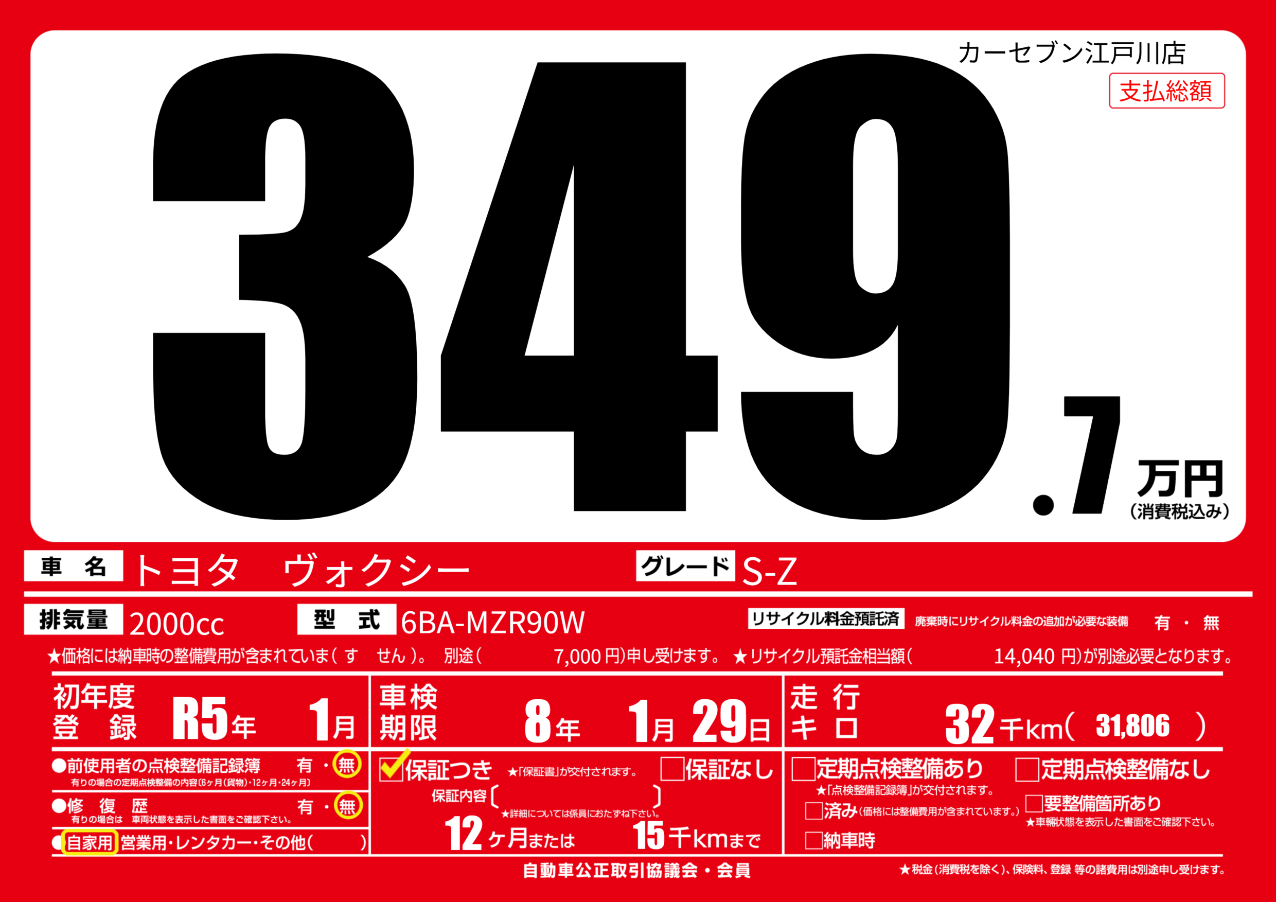 保証付き 保証内容(---) 12ヶ月または(15)千kmまで |