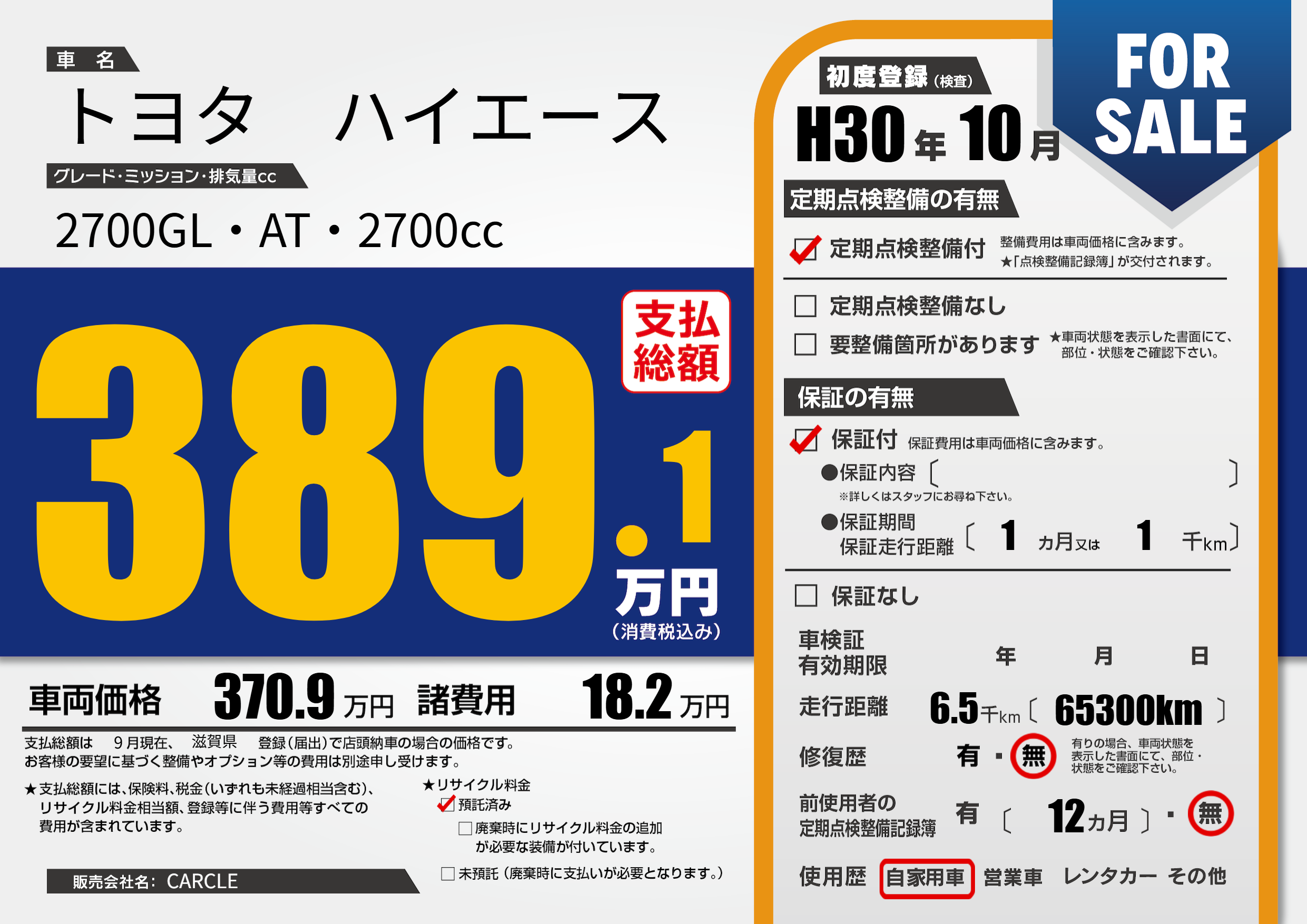| 初年度登録 | H30年10月 | ||