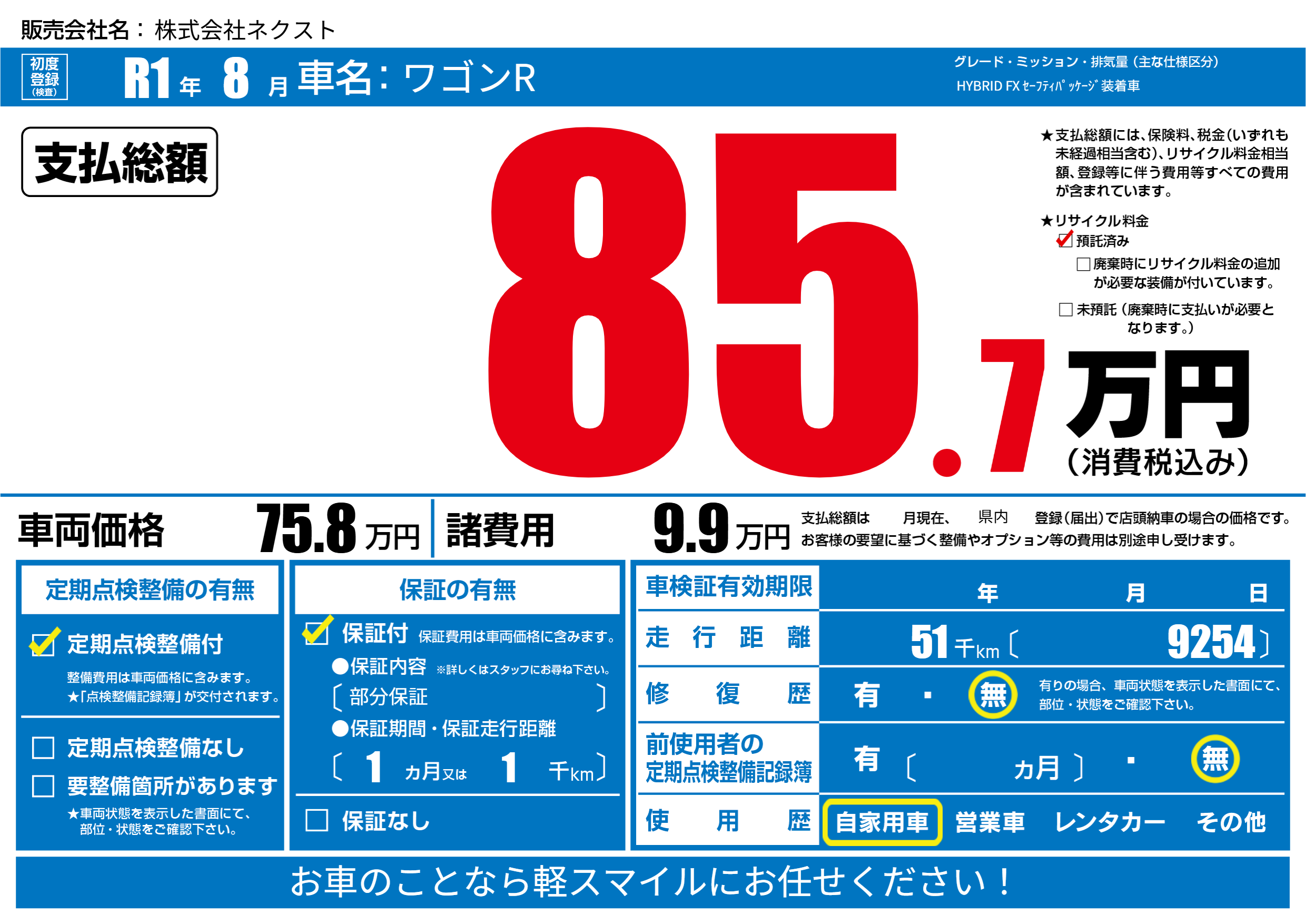 | 定期点検整備 | 定期点検整備あり | ||