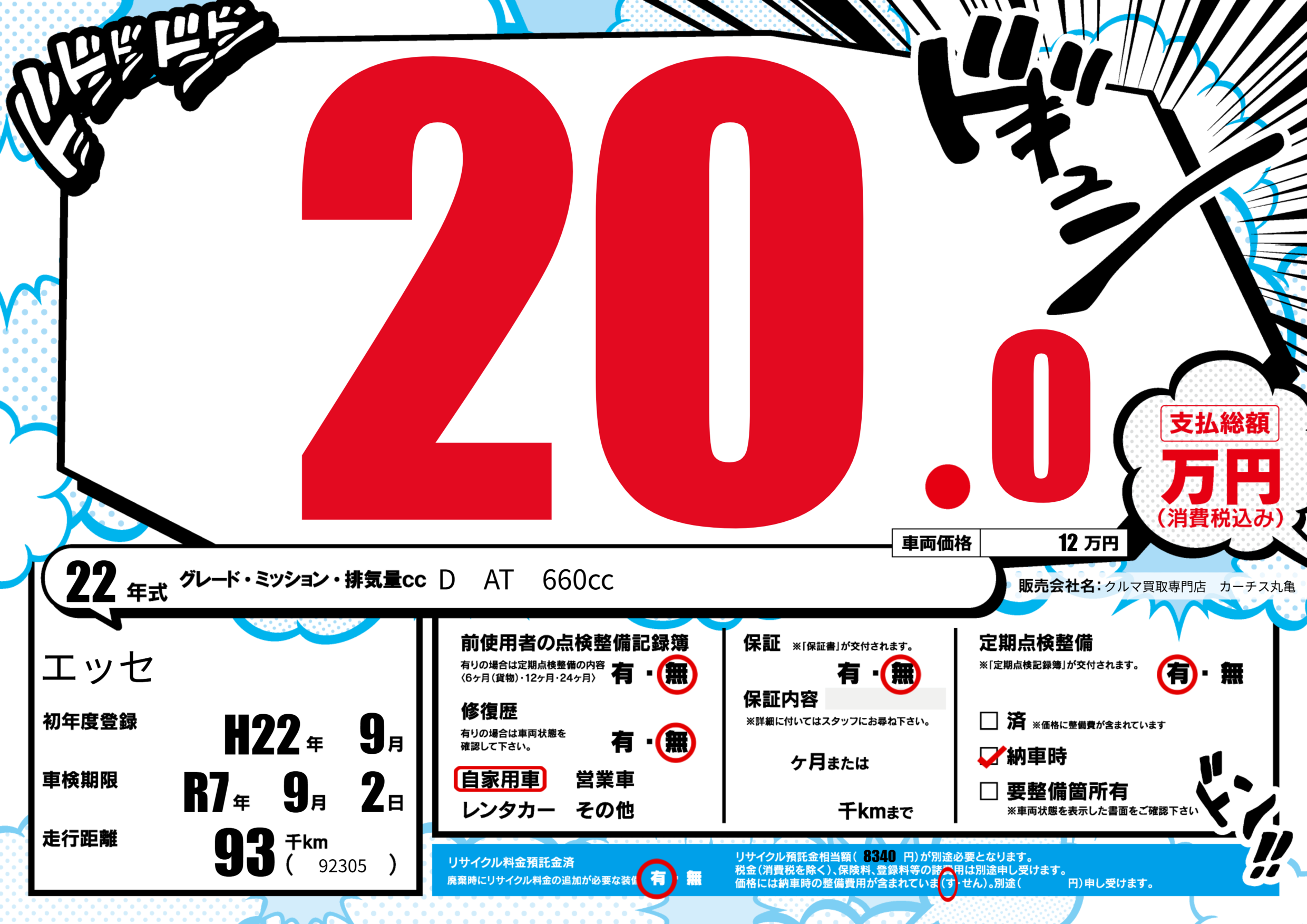 | 車名 | エッセ | グレード ミッション 排気量 |