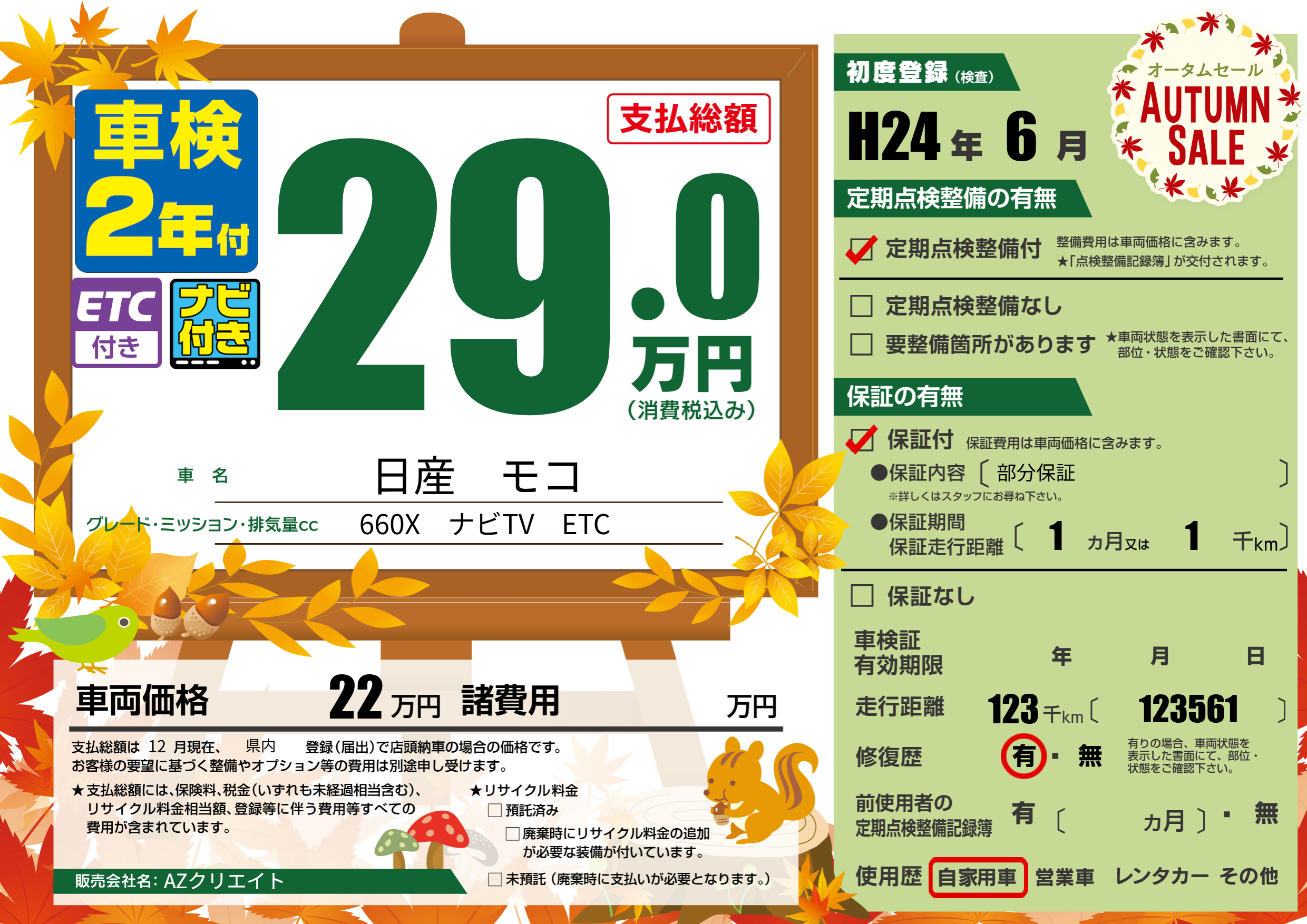 | 走行キロ | 12.3万km | 初年度登録 | H24年6月 |
