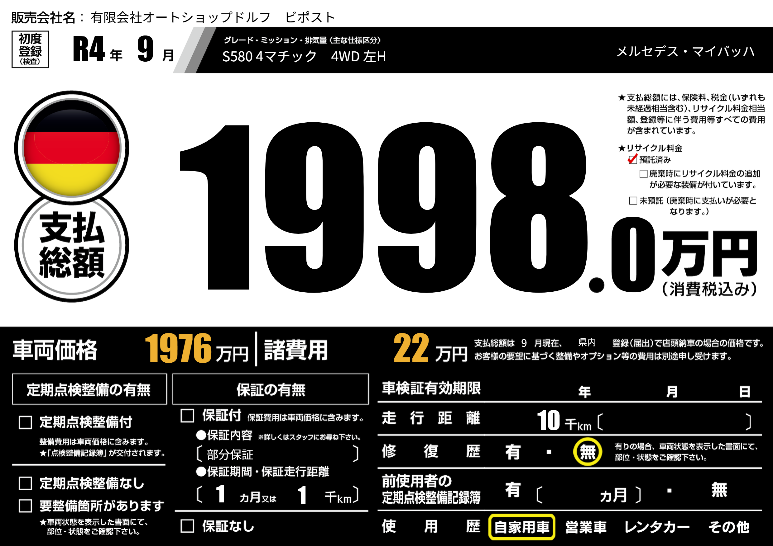 | 走行キロ | 1万km | 初年度登録 | R4年9月 |