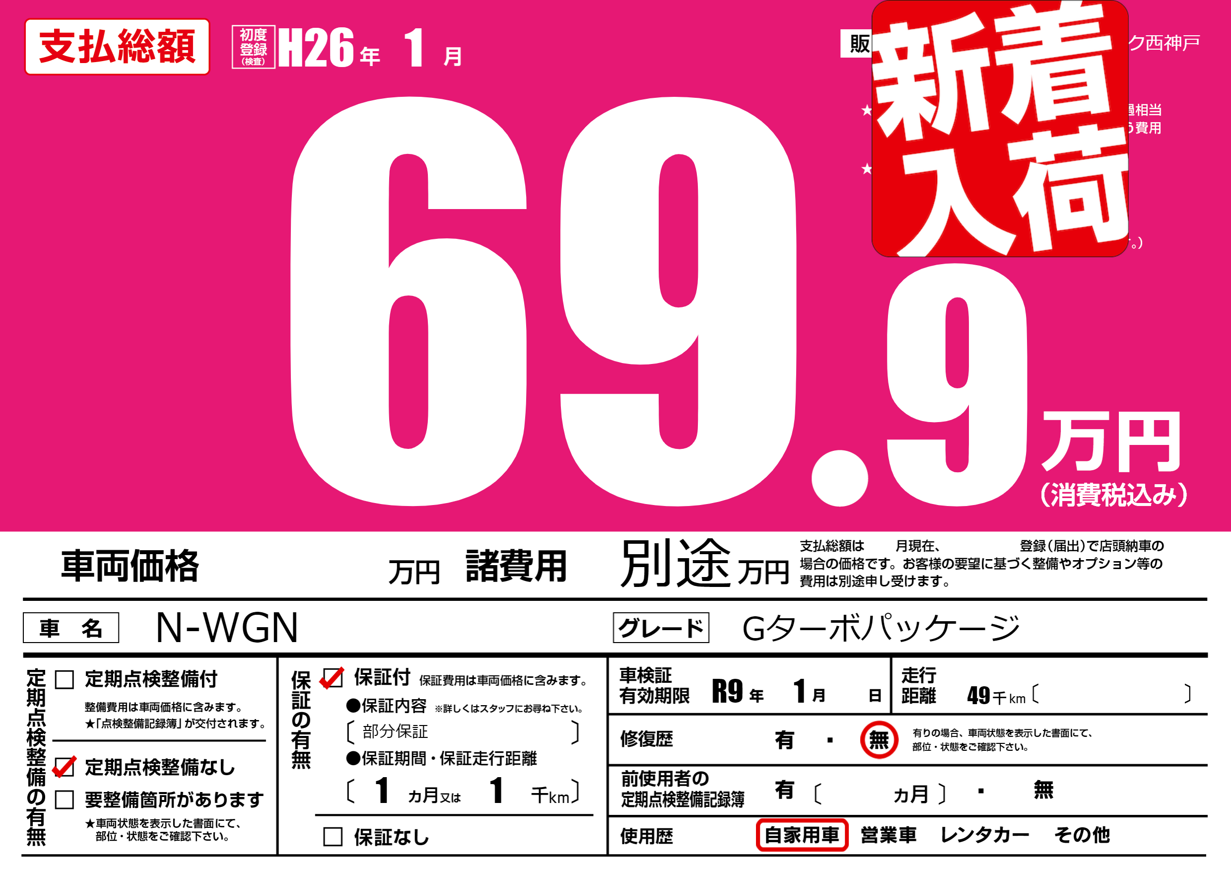| 車検制限 | R9年 1月 - 日 | ||