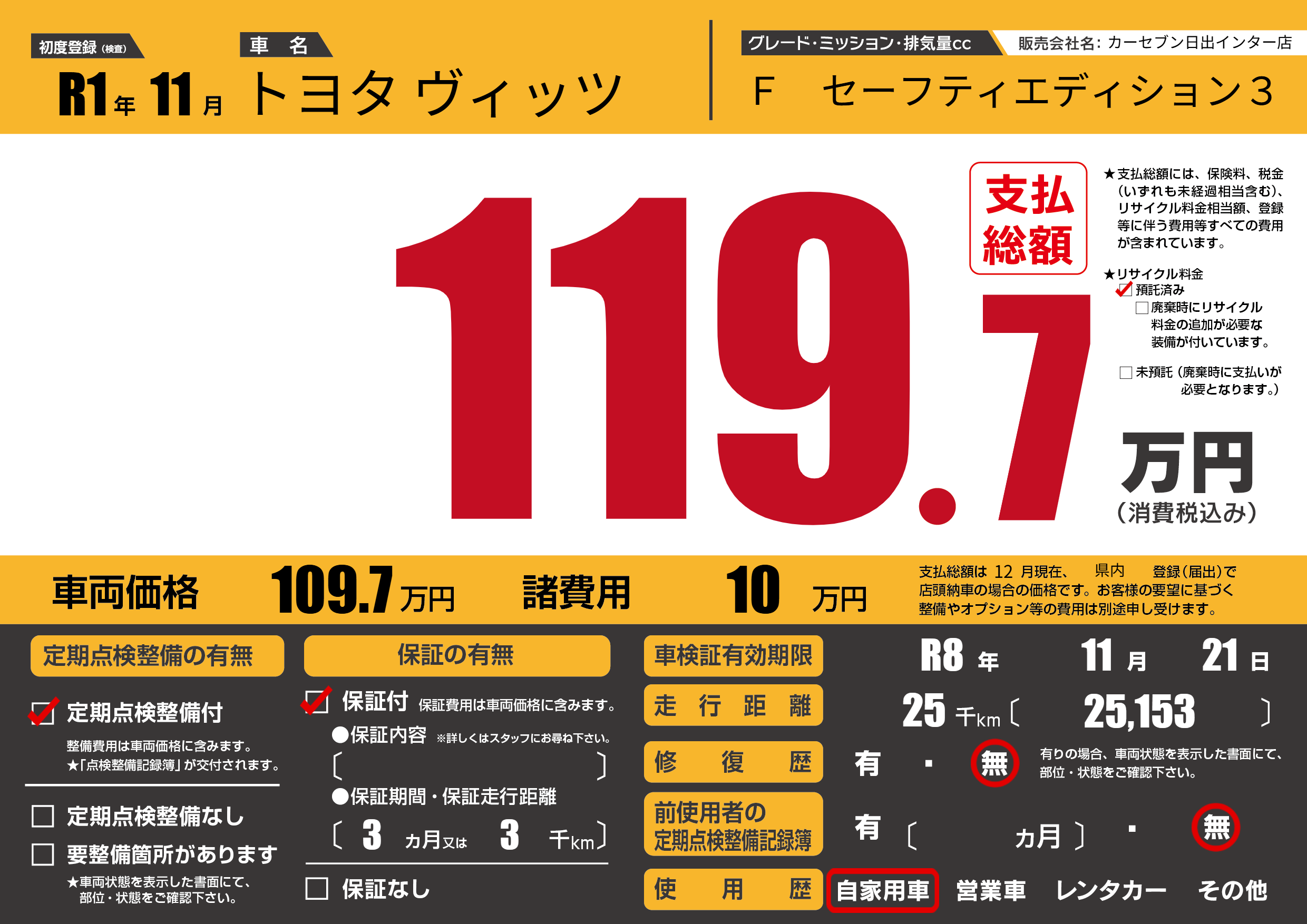 保証付き 保証内容(---) 3ヶ月または(3)千kmまで |