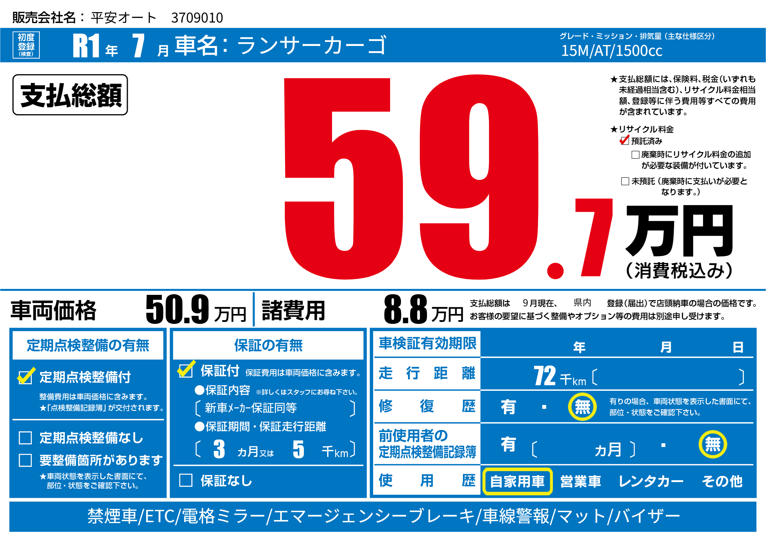 | 定期点検整備 | 定期点検整備あり | ||