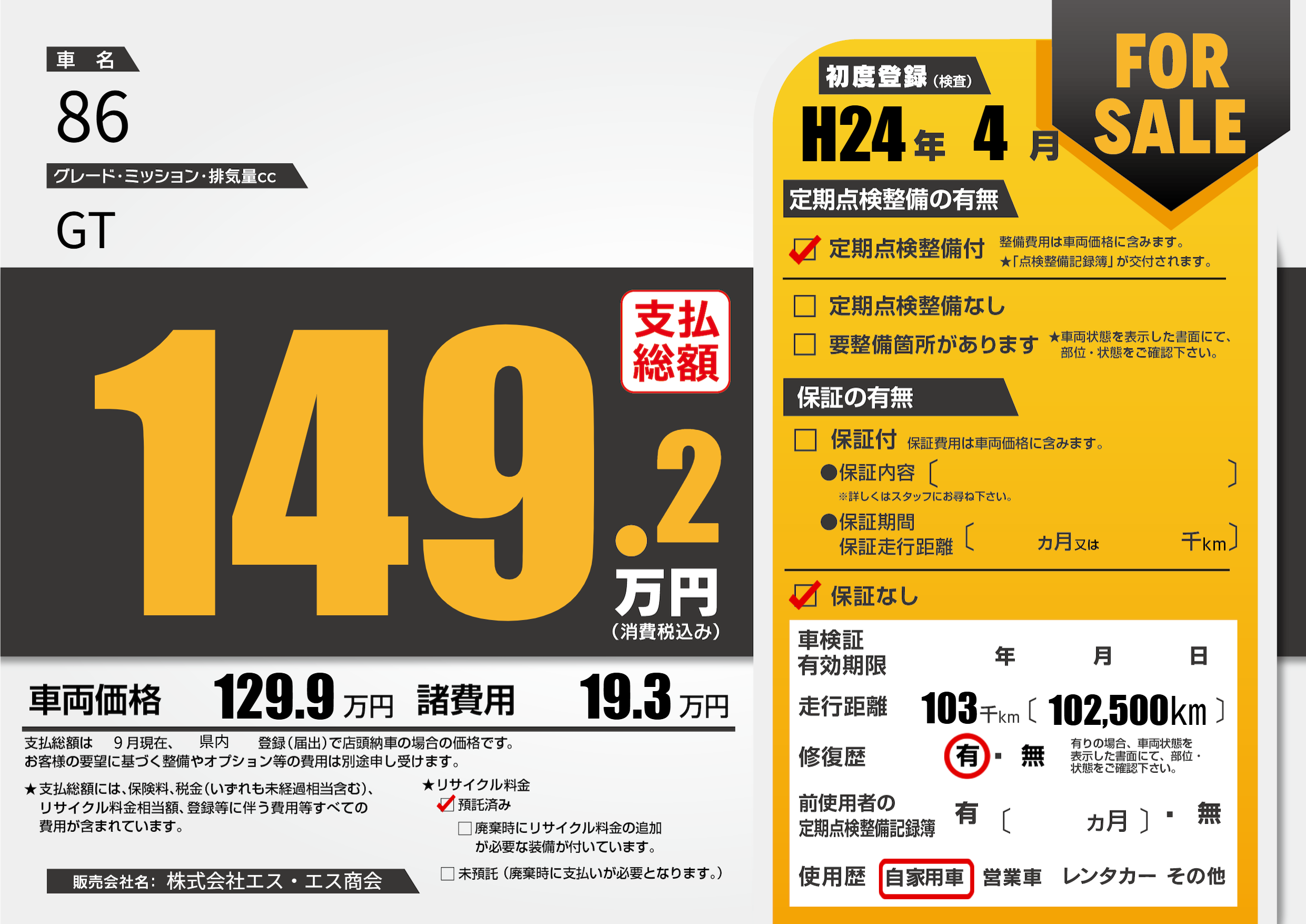 | 定期点検整備 | 定期点検整備あり | ||