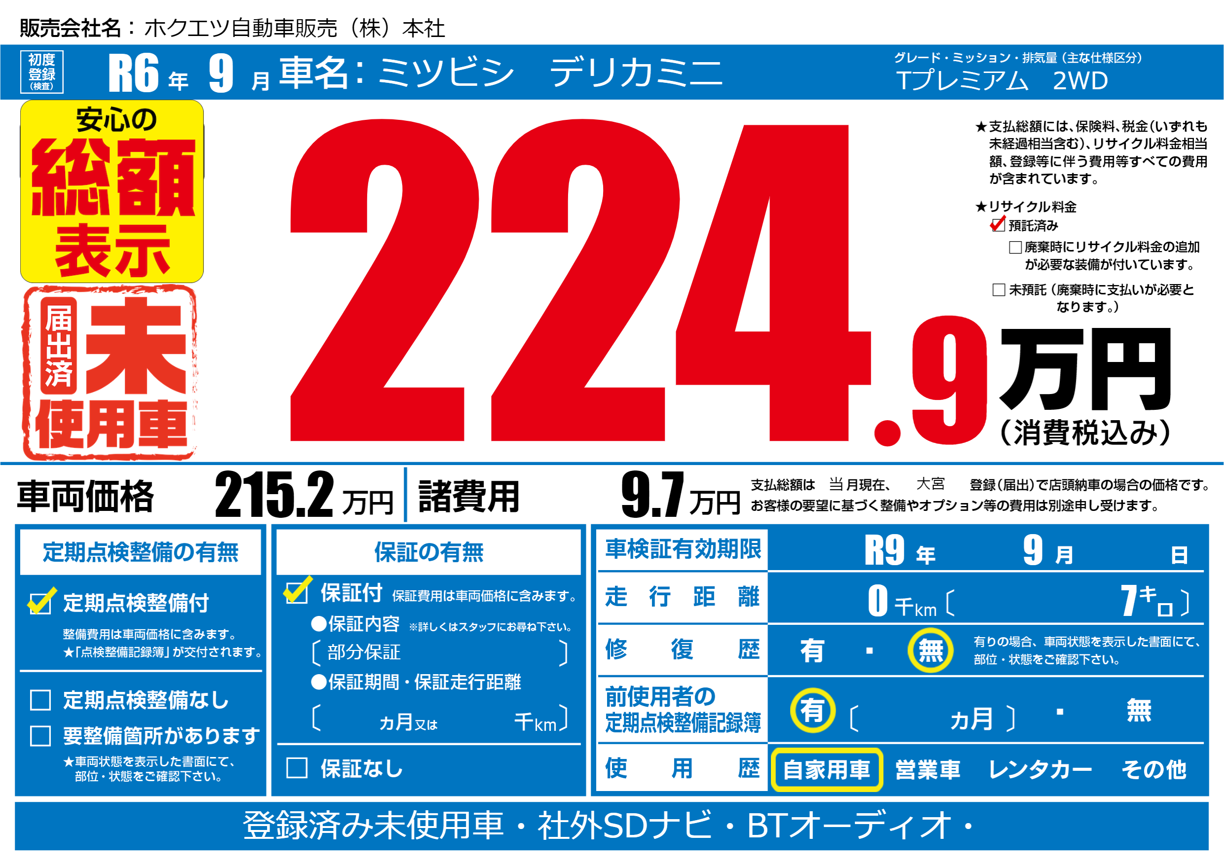 なし | 車検制限 | R9年9月---月 |