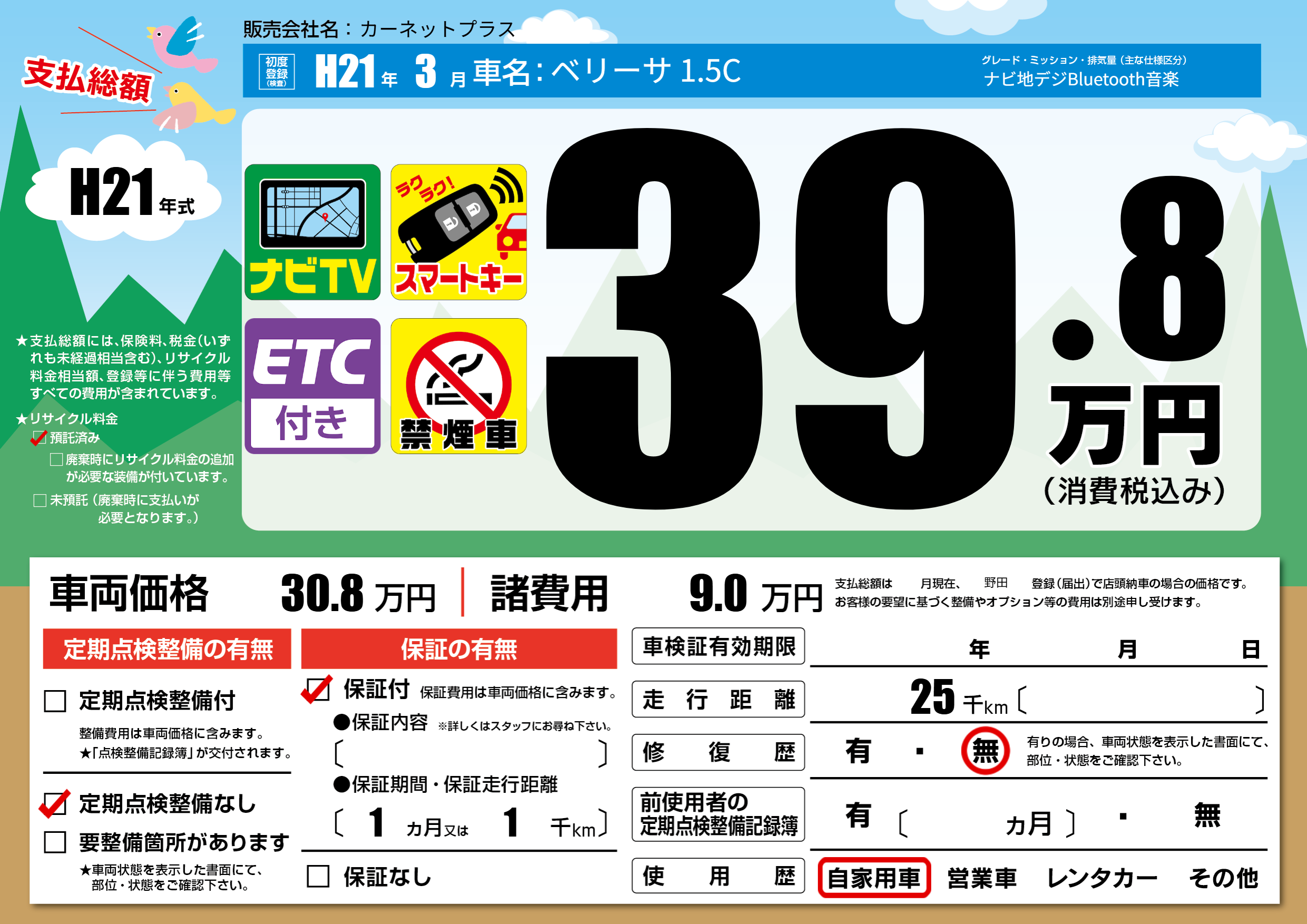 | 車名 | ベリーサ 1.5C | グレード ミッション 排気量 |