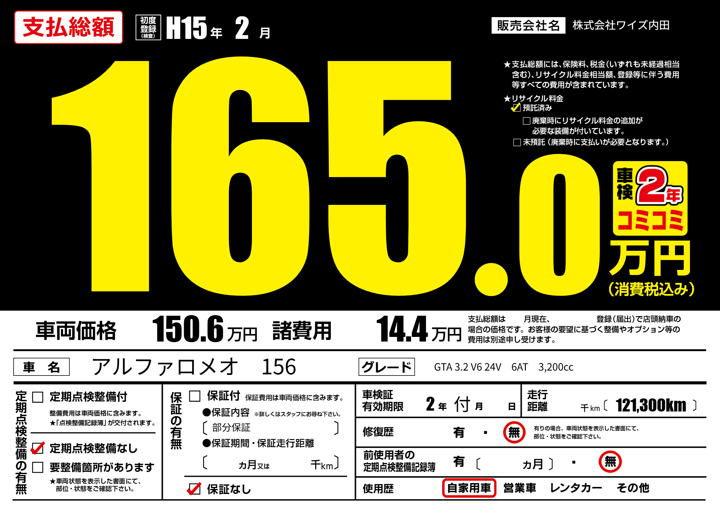 | 車名 | アルファロメオ 156 | グレード ミッション 排気量 |