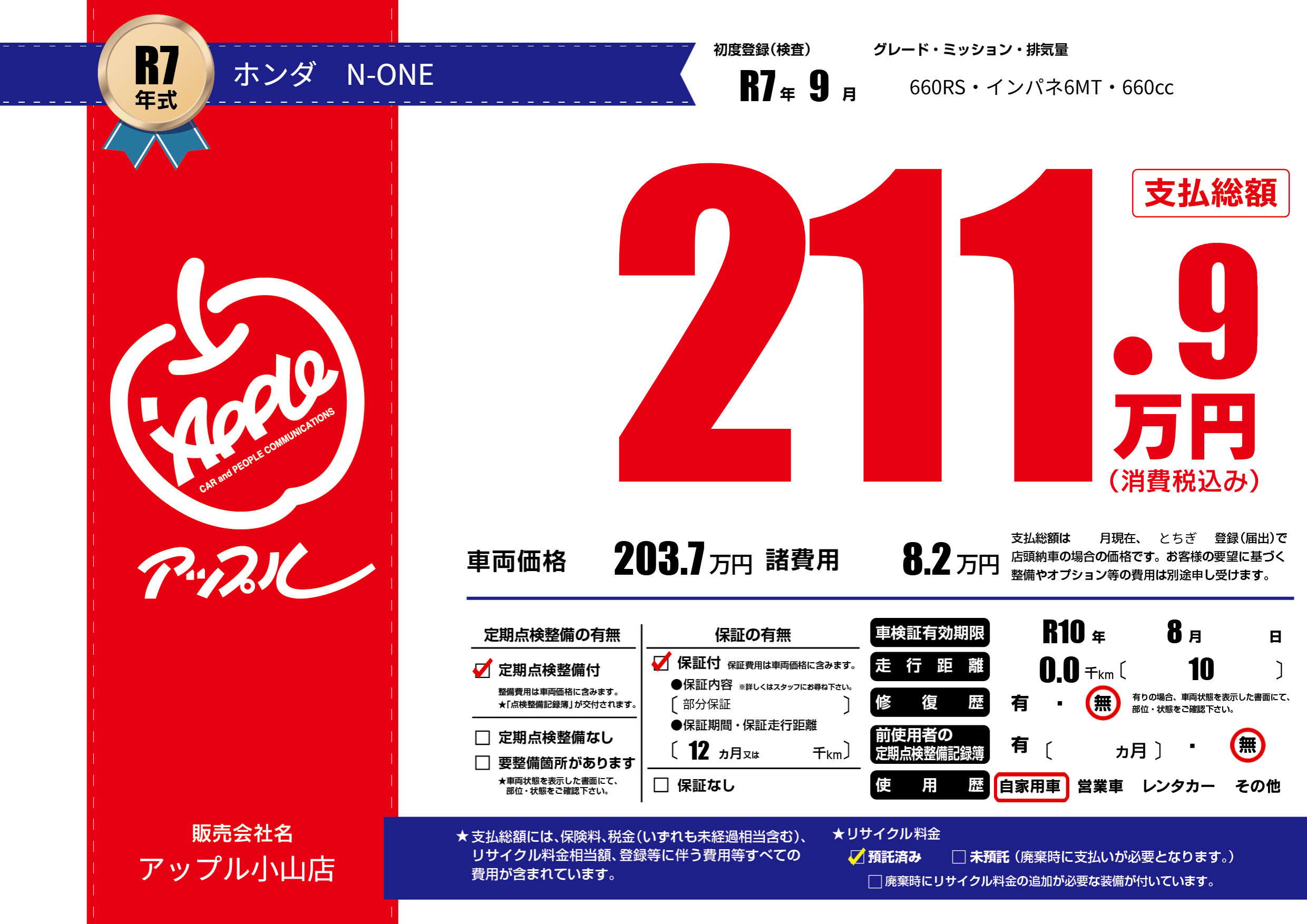 | 走行キロ | - | 初年度登録 | R7年9月 |