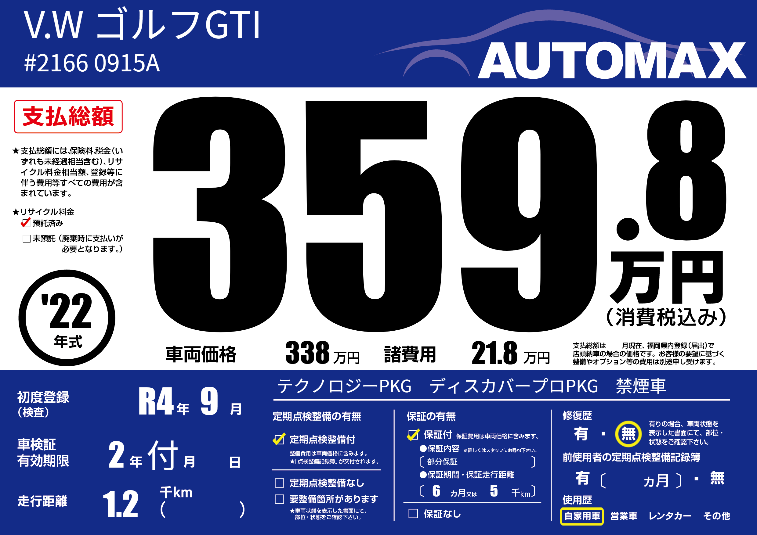 | 車検制限 | 2年 付月 - 日 | ||