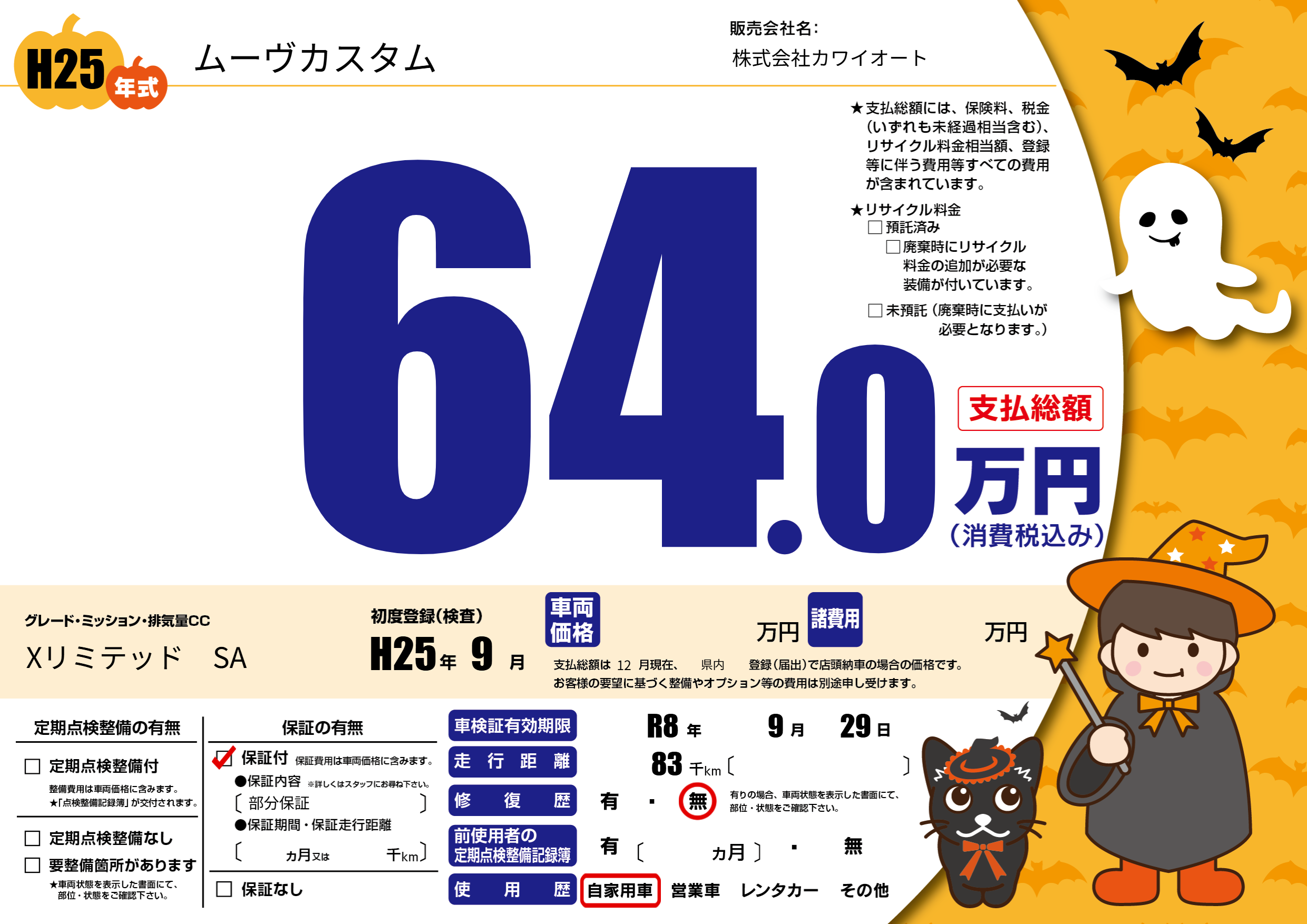 | 走行キロ | 8.3万km | 初年度登録 | H25年9月 |