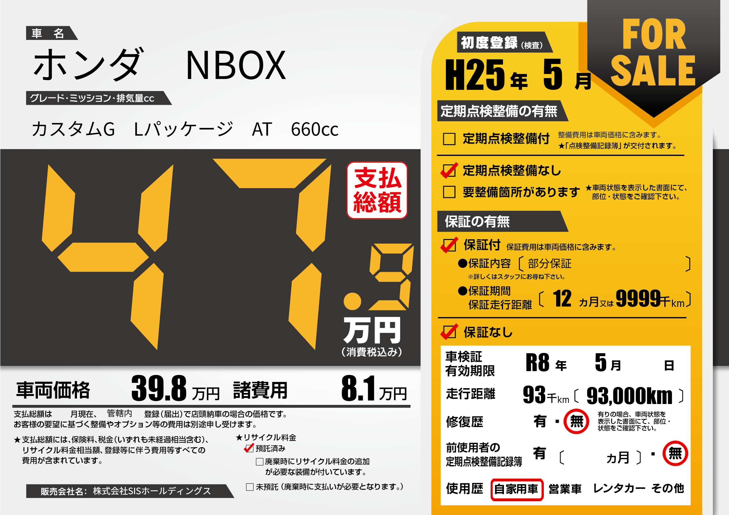 なし | 車検制限 | R8年5月---月 |