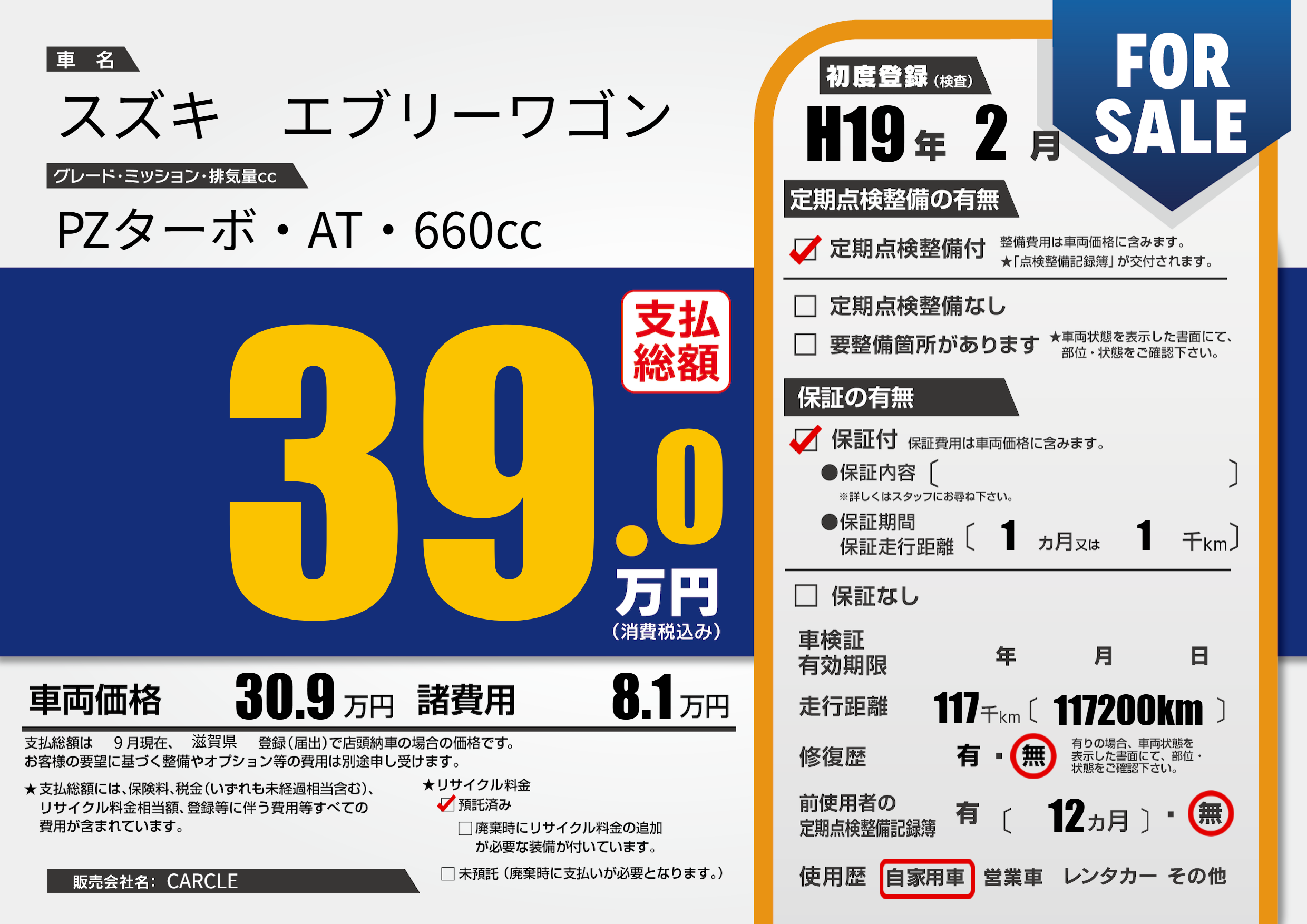 | 定期点検整備 | 定期点検整備あり | ||