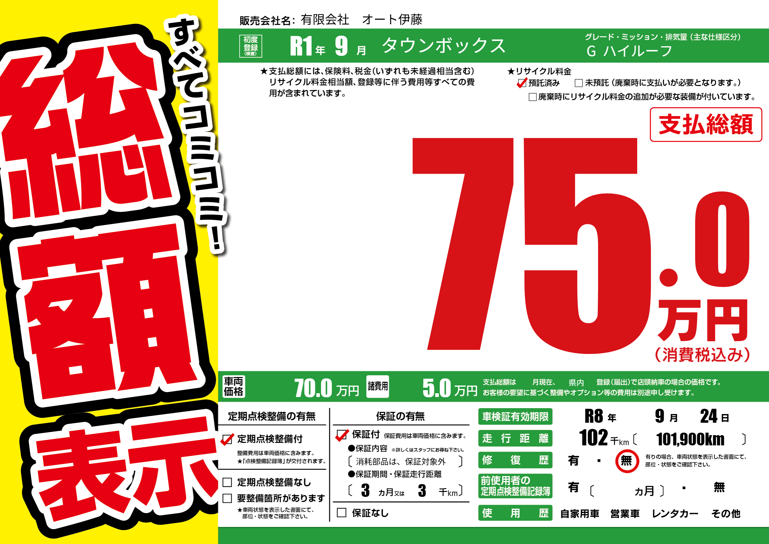 | 車名 | タウンボックス | グレード ミッション 排気量 |