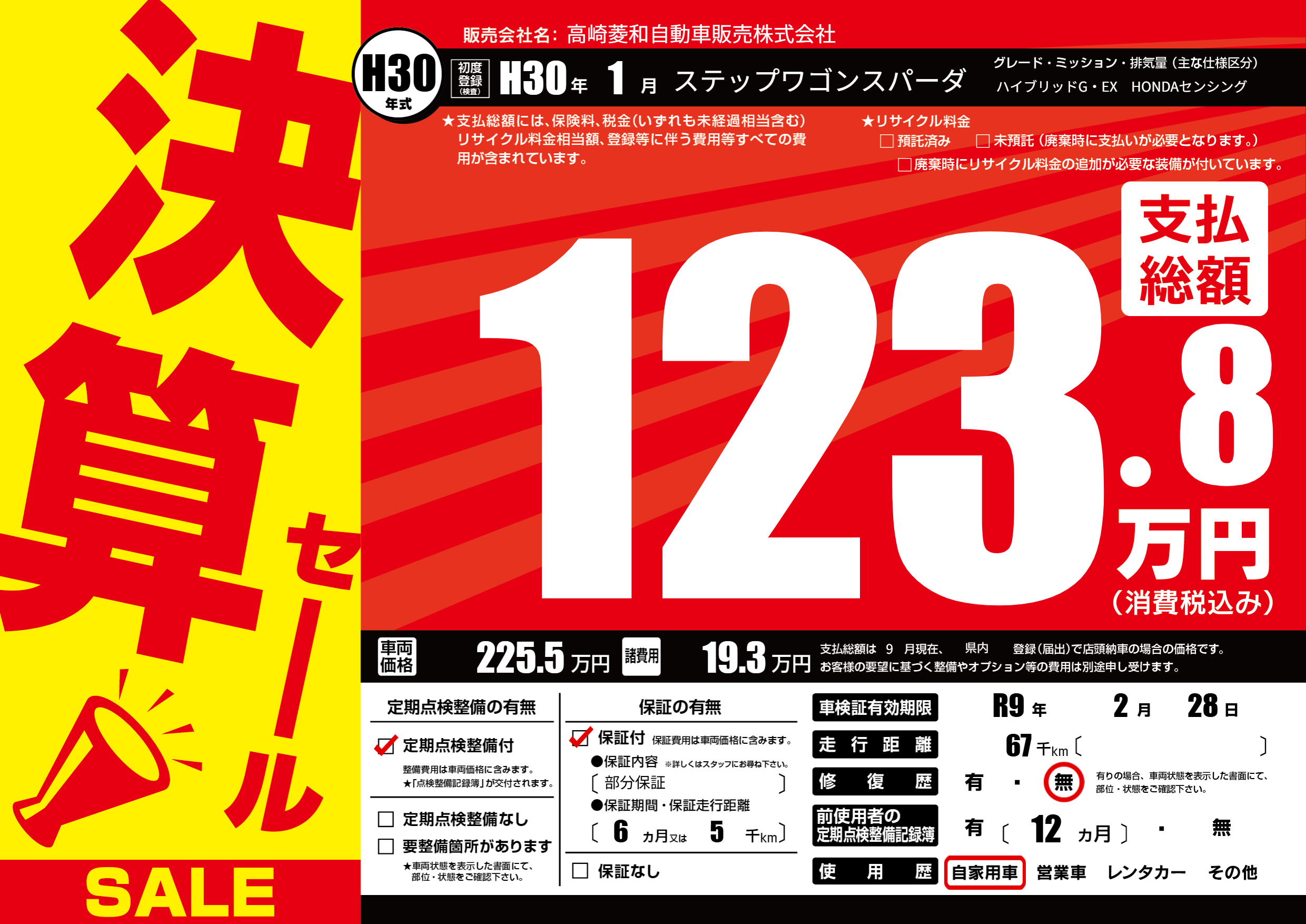 | 車名 | ステップワゴンスパーダ | グレード ミッション 排気量 |