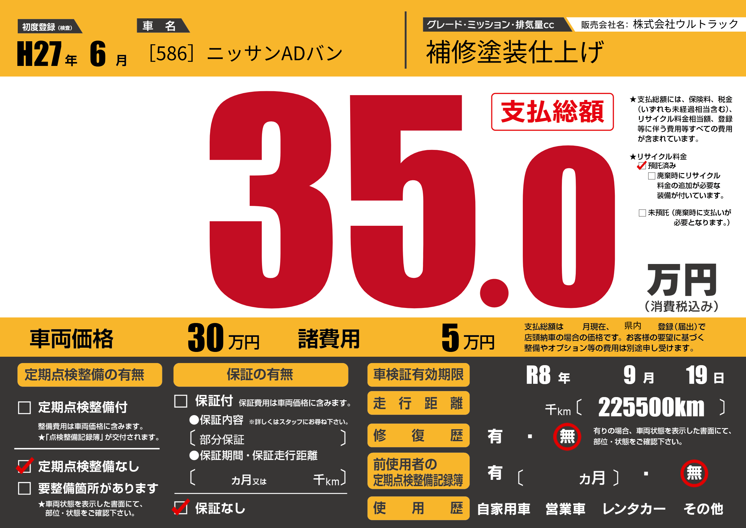 | 車名 | [586]ニッサンADバン | グレード ミッション 排気量 |