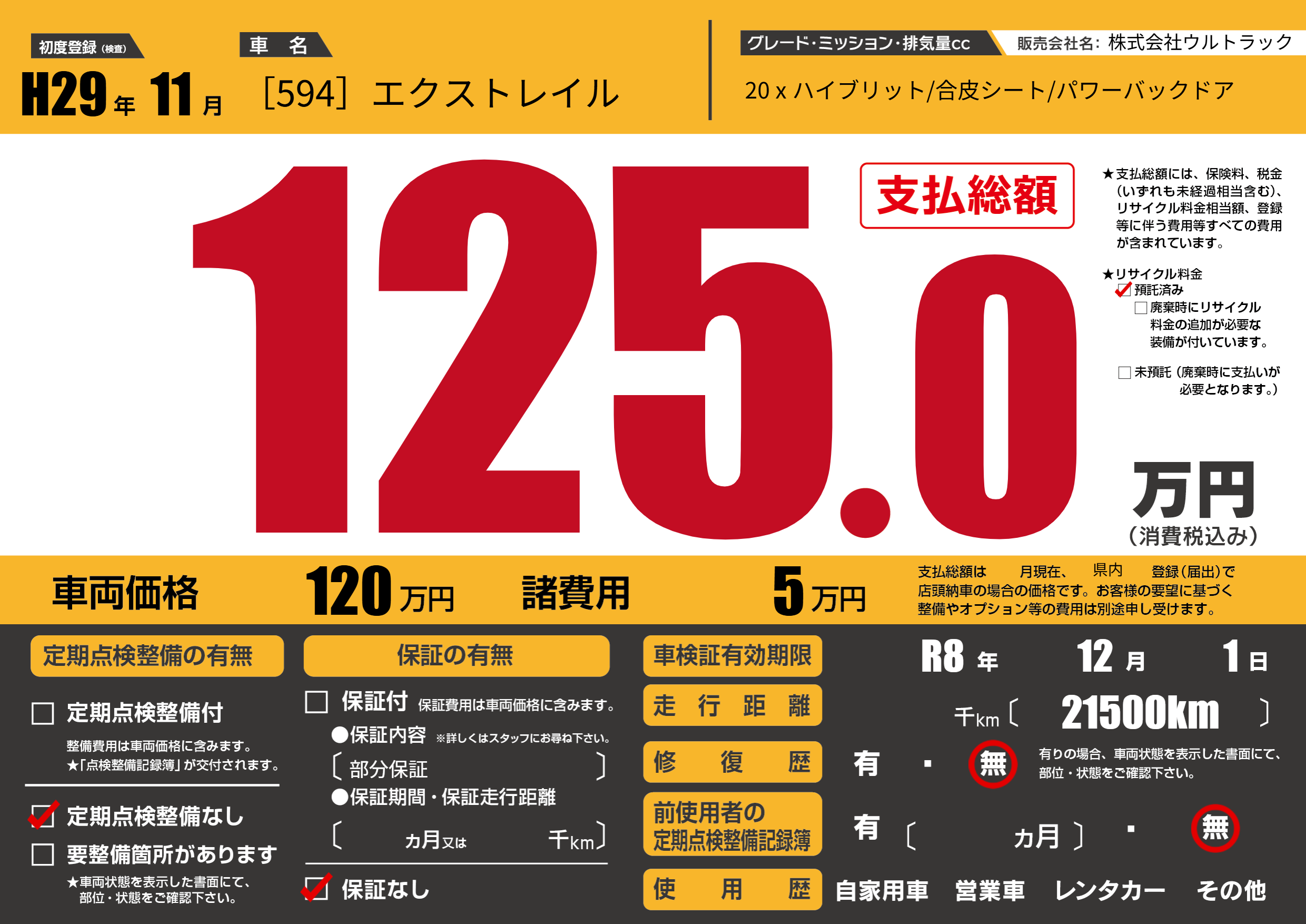 なし | 車検制限 | R8年12月1月 |