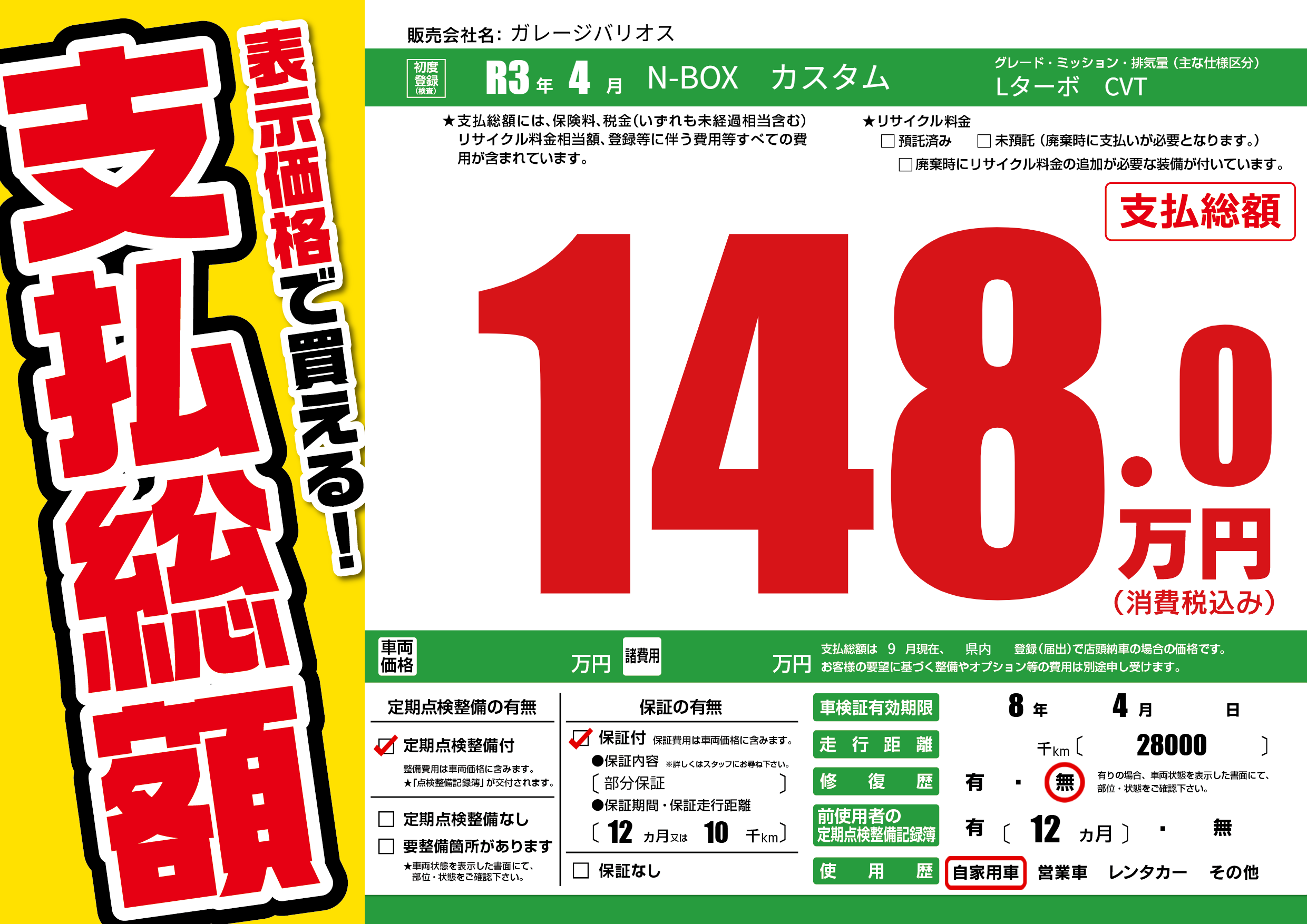 | 定期点検整備 | 定期点検整備あり | ||