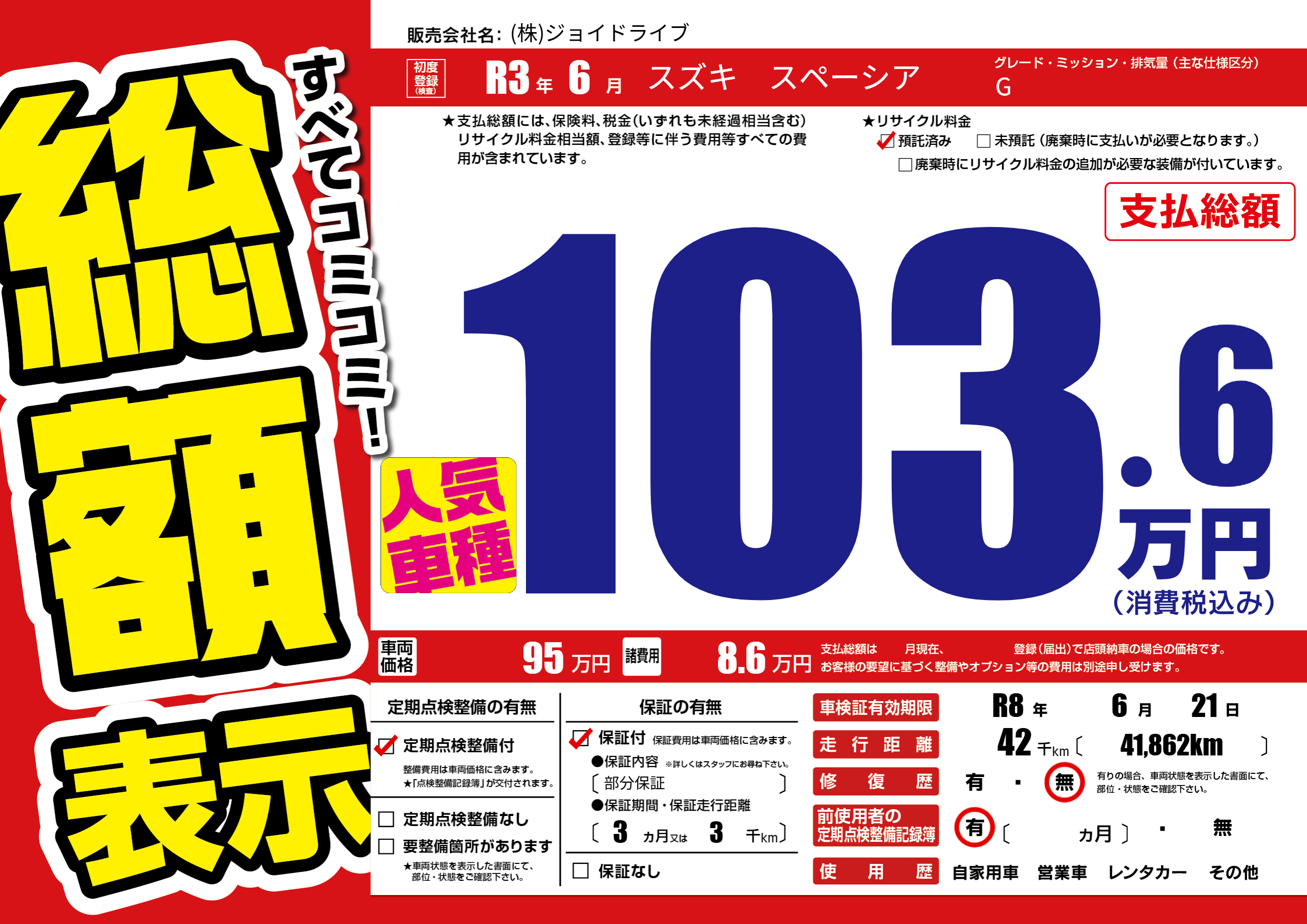 なし | 車検制限 | R8年6月21月 |
