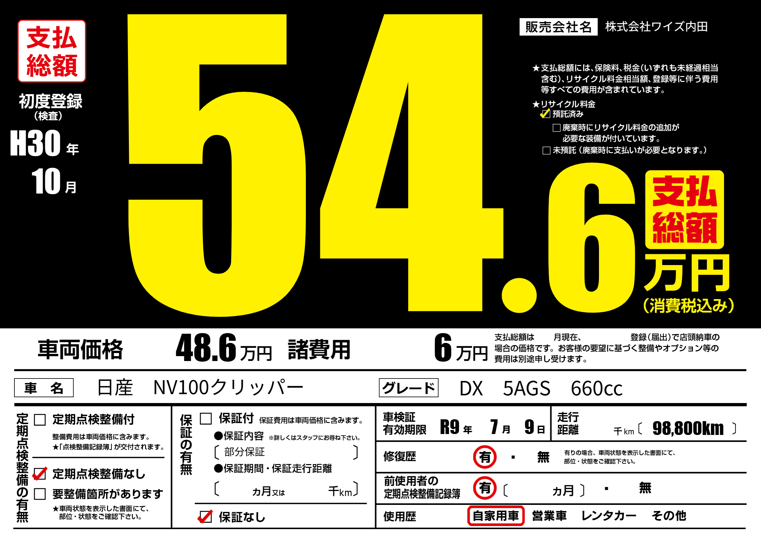 車検制限 R9年 7月 9日